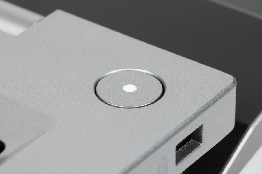 Круглая кнопка Power находится справа в дальнем углу верхней панели, причем вне клавиатуры и заподлицо с поверхностью, что исключает ошибочные нажатия, а белая точка в центре поможет увидеть ее в затемненном помещении (при включении эта точка подсвечивается). В клавиши Caps Lock и Num Lock также встроены индикаторы, обозначающие задействование соответствующих режимов.