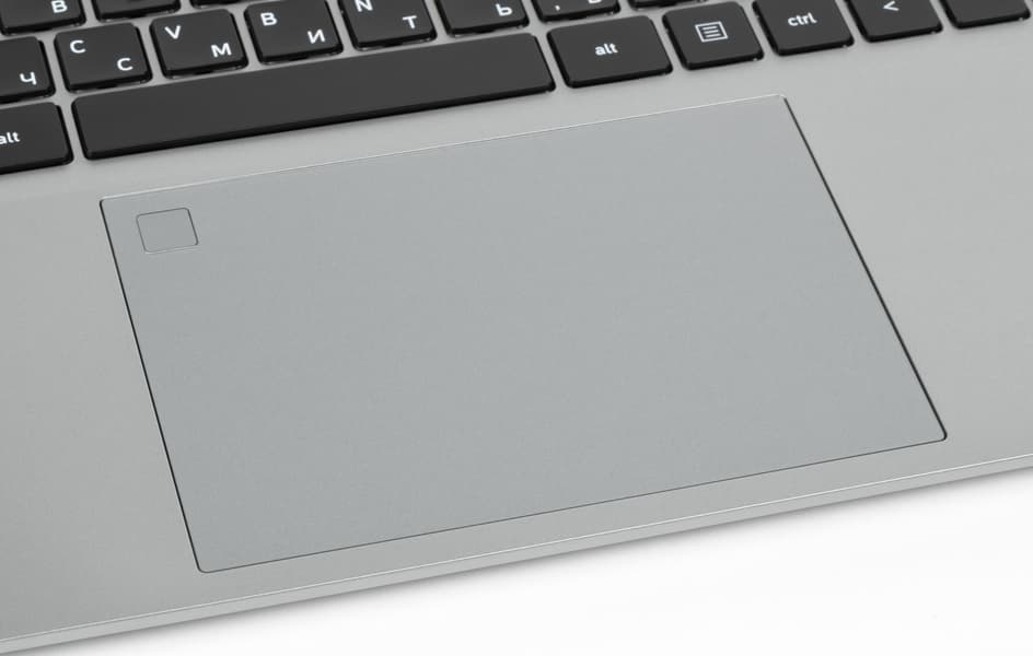 Тачпад очень большой — его размеры 141×96 мм, выделенных клавиш нет, но левый и правый ближние края вполне могут работать как соответствующие кнопки мыши, поверхность слегка заглублена.