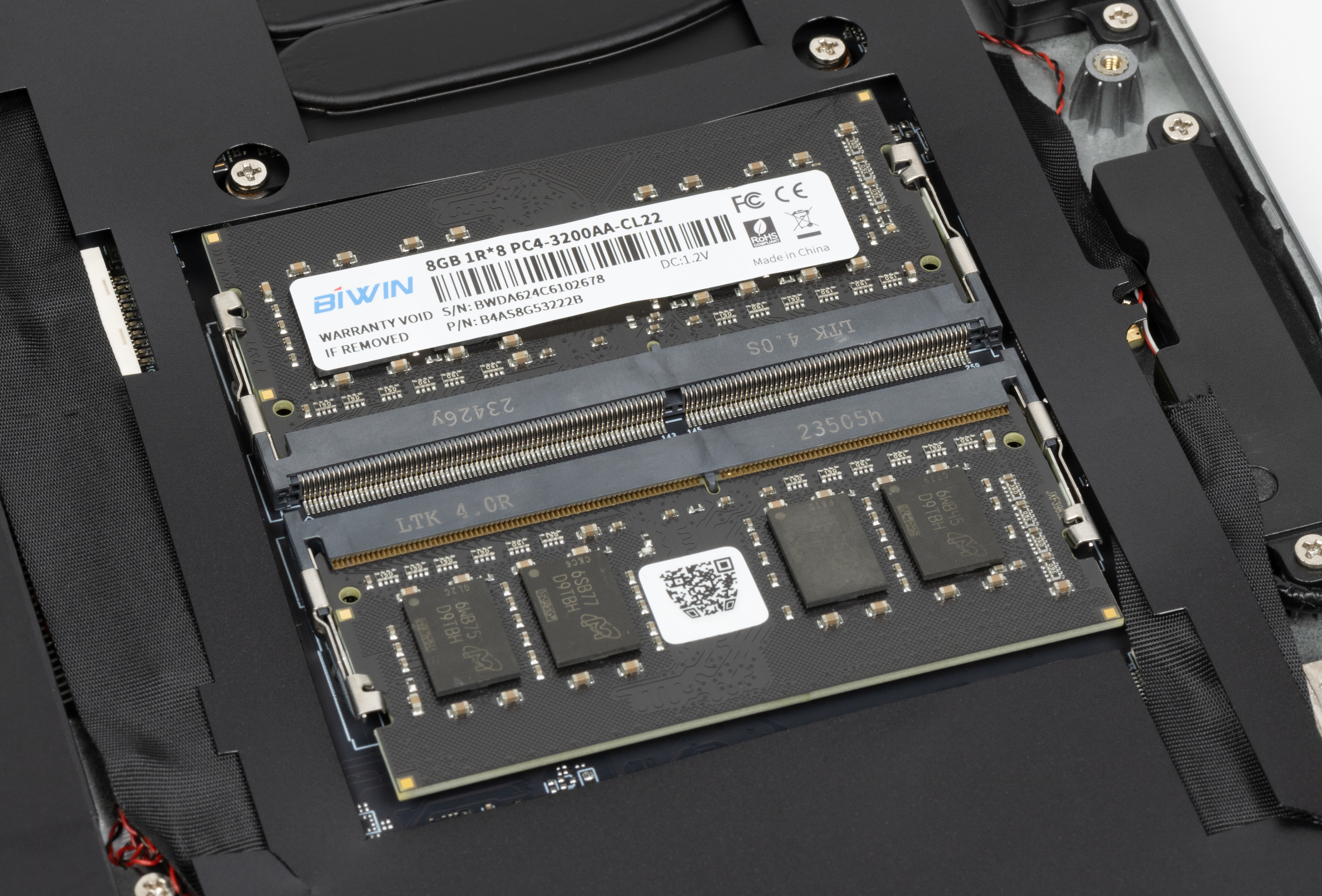 На системной плате установлена память DDR4 в виде двух модулей SO-DIMM в соответствующих слотах, работает она в двухканальном режиме.