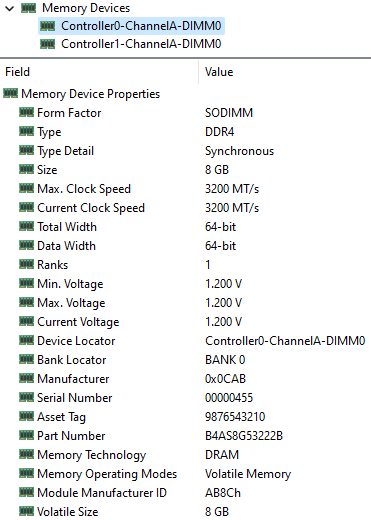 | Оперативная память | 16 (2×8) ГБ DDR4-3200 установлены в слоты SO-DIMM, свободных слотов нет есть вариант с одним модулем 8 ГБ | |
