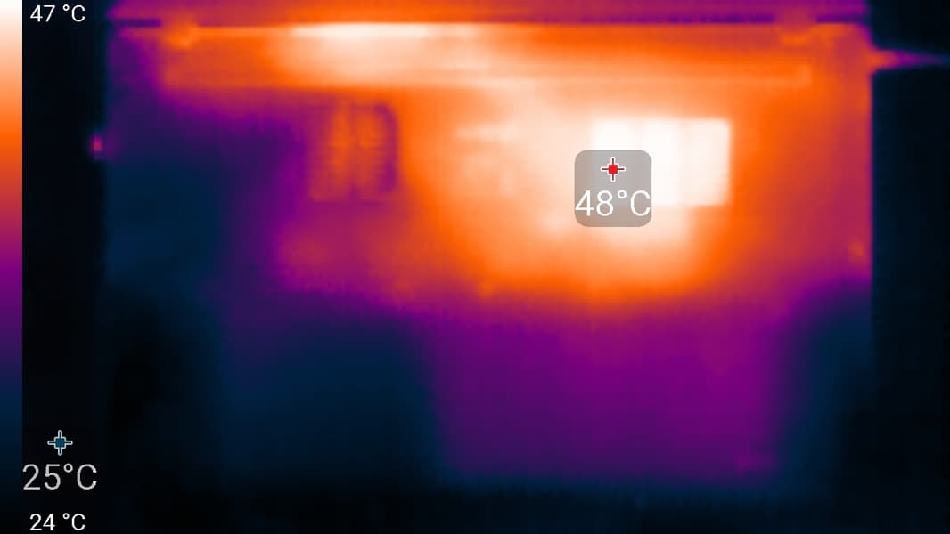 На задней панели имеется решетка, через которую из внутреннего объема ноутбука удаляется нагретый воздух.
