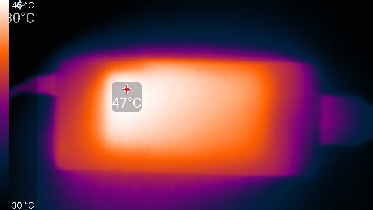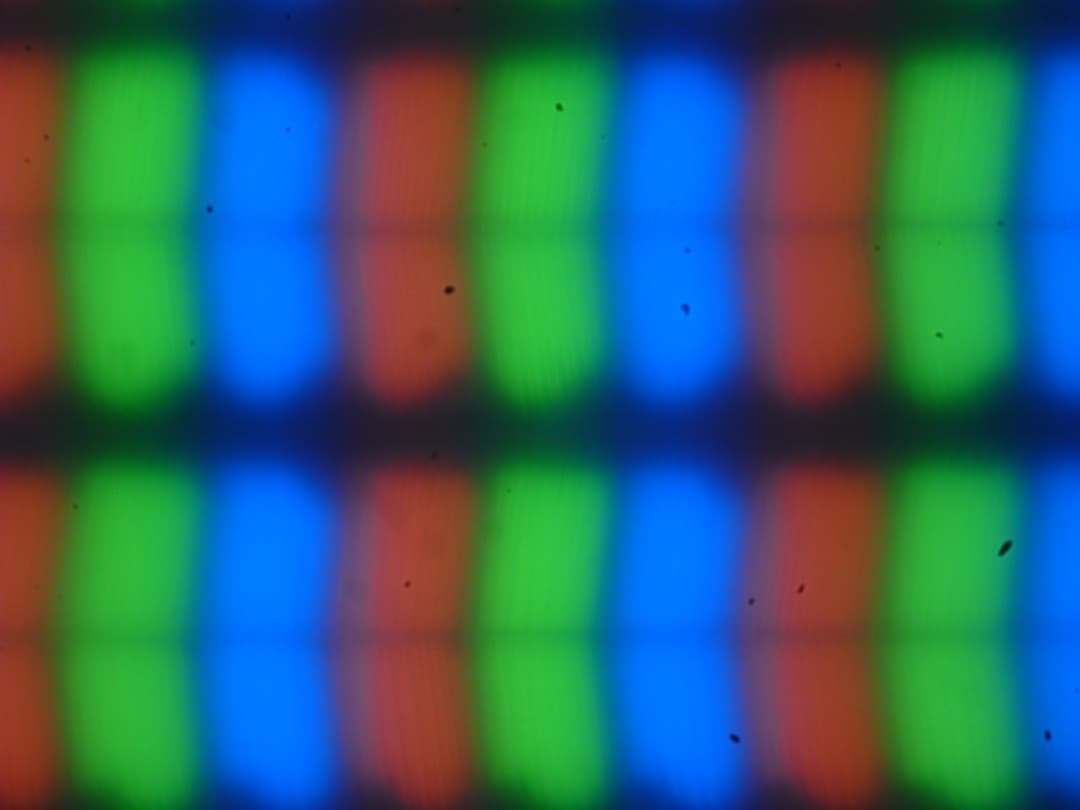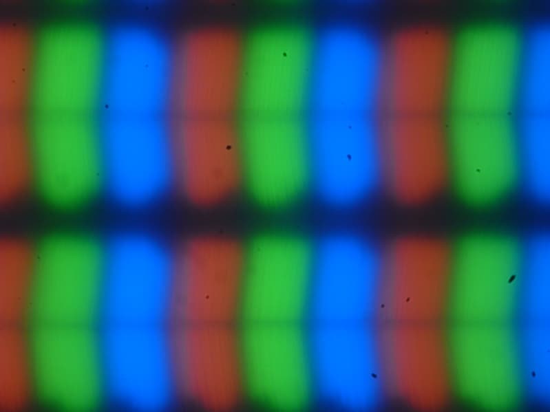 Внешняя поверхность матрицы черная жесткая и полуматовая (зеркальность хорошо выражена). Какие-либо специальные антибликовые покрытия или фильтр отсутствуют, нет и воздушного промежутка. При питании от сети или от батареи и при ручном управлении яркостью (автоматической подстройки по датчику освещенности нет) ее максимальное значение составило 314 кд/м² (в центре экрана на белом фоне). Если избегать прямого солнечного света, то такое значение позволяет как-то использовать ноутбук на улице даже летним солнечным днем.