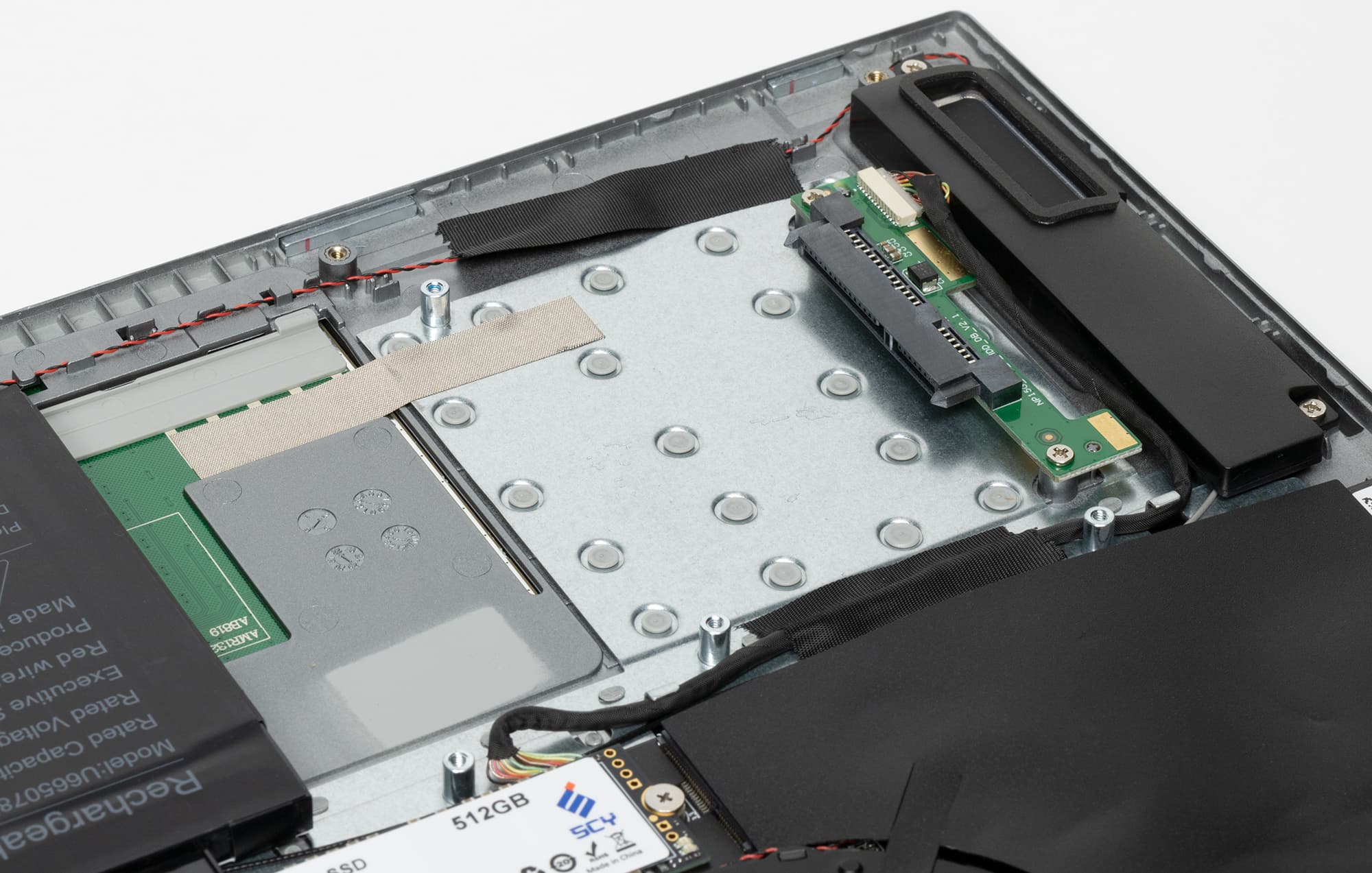 Слева от батареи виден разъем SATA для подключения еще одного накопителя — жесткого диска или SSD форм-фактора 2,5 дюйма.
