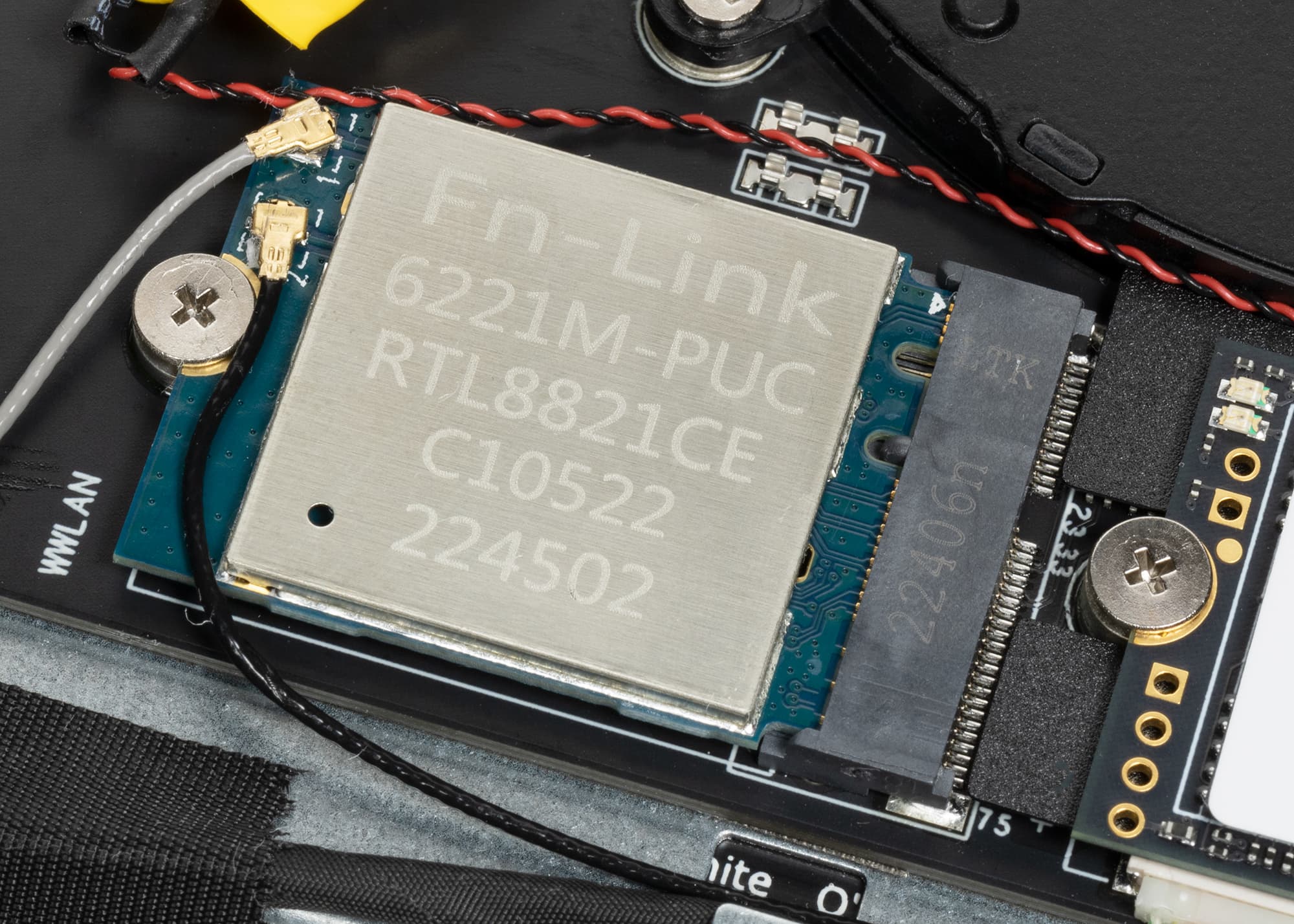 Digma Pro Fortis M располагает адаптером беспроводной связи Realtek 8821CE с поддержкой стандарта 802.11aс (класс Wi-Fi 5). Он располагает одной антенной, работающей одновременно на прием и передачу (1T1X) в режиме множественных многопользовательских подключений MU-MIMO.