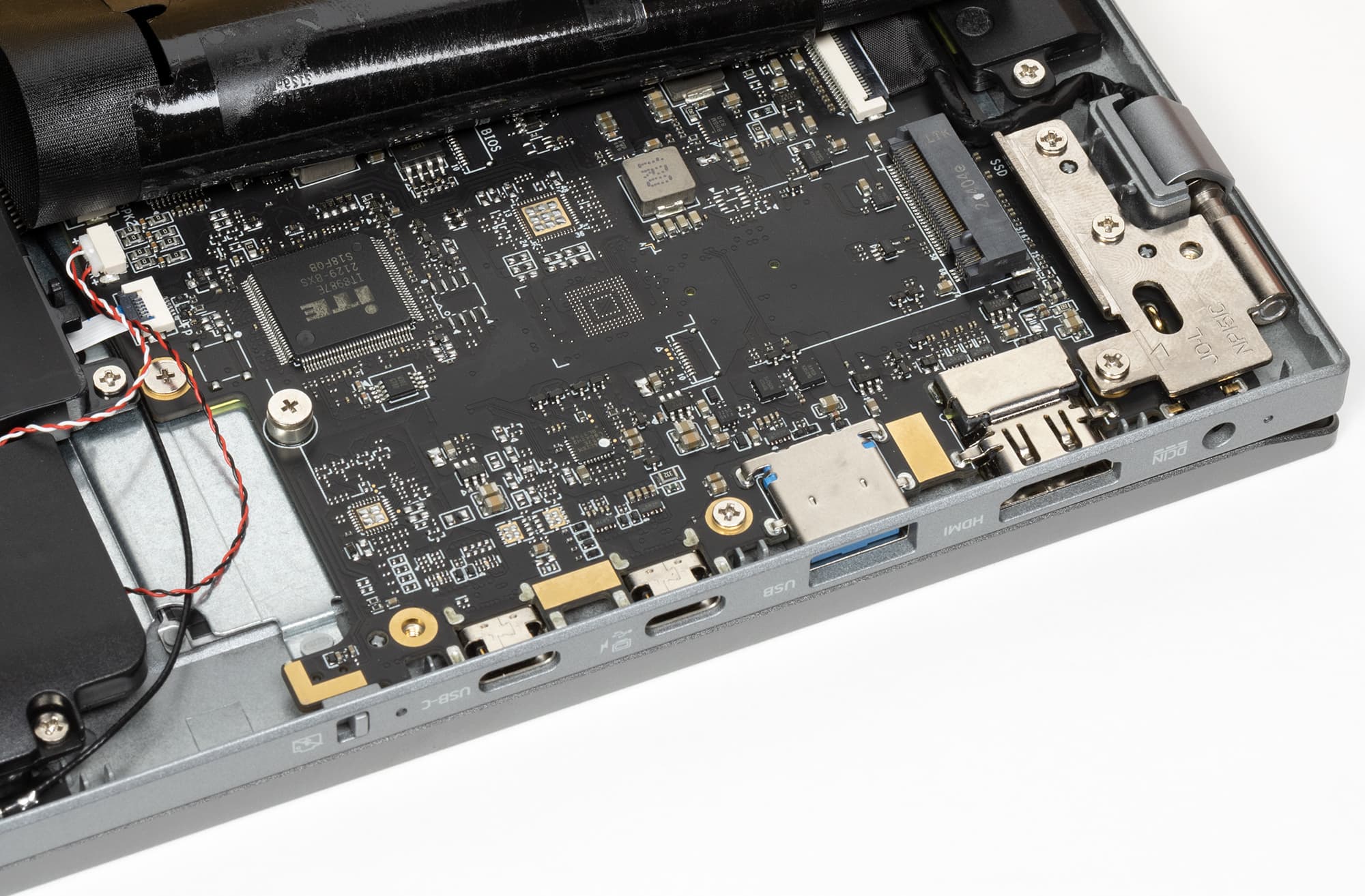 Культура производства на высоте. Пайка и монтаж компонентов выполнены тщательно. Единственное «но» — не спрятанные под накладки провода, ведущие к динамикам. Впрочем, это не исключение, а скорее правило в мире ноутбуков, и к этому давно следовало привыкнуть.