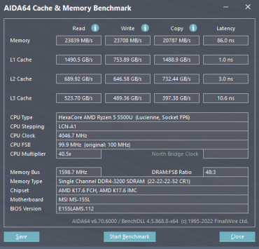 Наилучшие результаты демонстрирует двухканальная и самая быстрая из конкурентов оперативная память Infinix Inbook X2, наихудшие — одноканальная DDR4-3200 в ноутбуке MSI Modern 15. Герой обзора располагается в турнирной таблице примерно посередине между победителем и проигравшим.