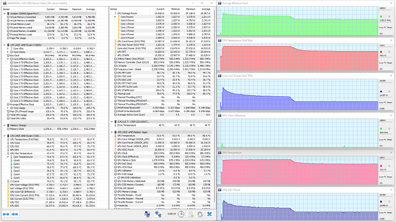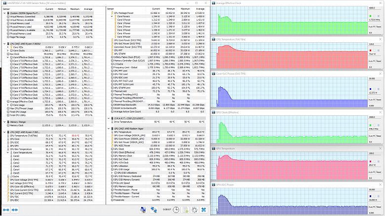 Как и следовало ожидать, наилучшие показатели демонстрирует Infinix Inbook X2 Plus с интегрированной графикой Intel Iris Xe, а наихудшие — MSI Modern 15 с AMD Radeon Graphics в процессоре, стоящем на ступень ниже в иерархии энергоэкономичных мобильных CPU+GPU, чем у героя обзора. Здесь все прогнозируемо, и ничего иного не следовало ожидать.