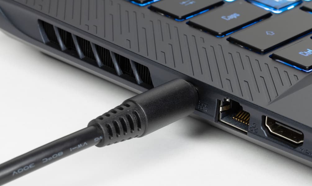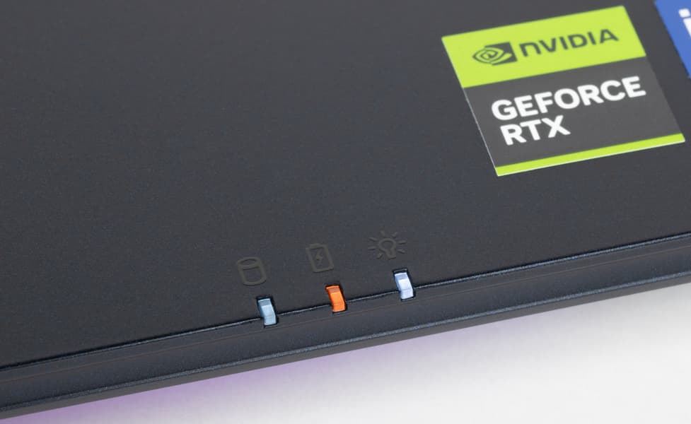 Левый сигнализирует об активности системного накопителя, центральный уведомляет о неполном заряде батареи, а правый — о подключении адаптера питания.