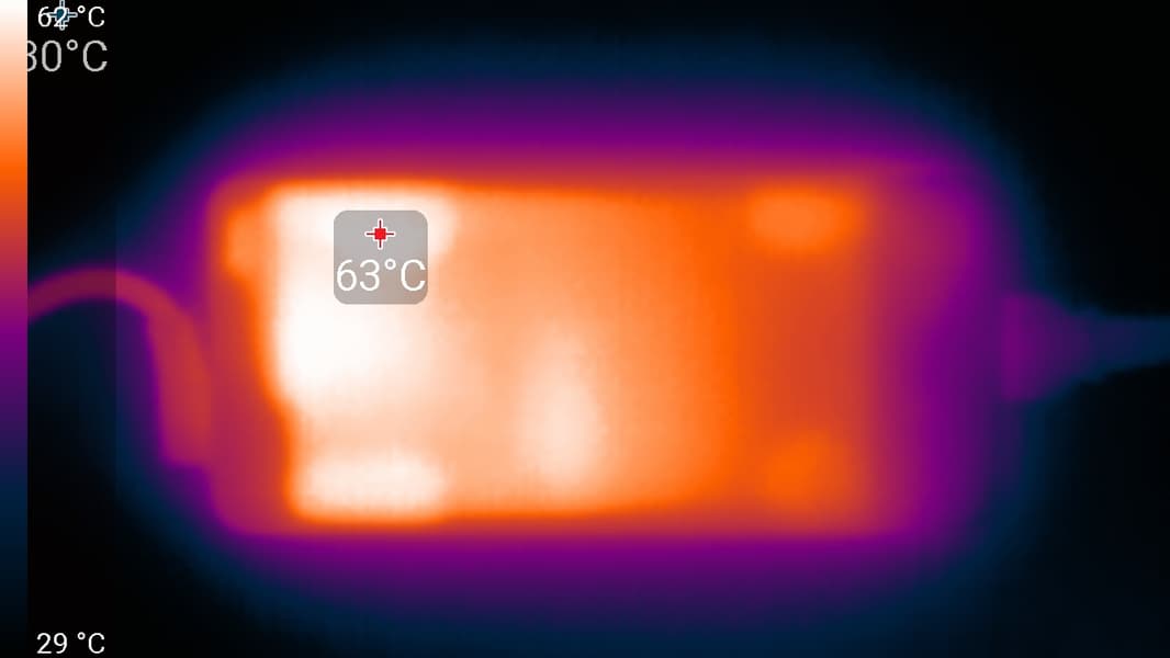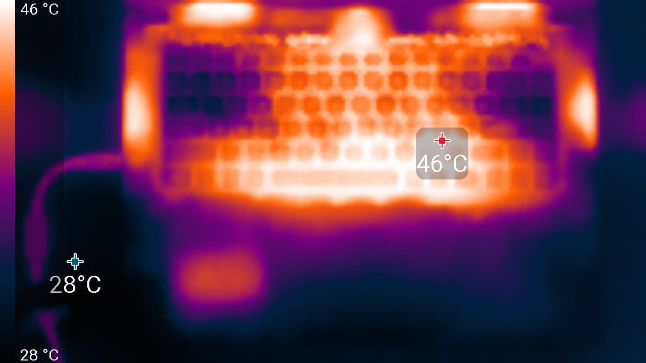 При питании от сети или от батареи и при ручном управлении яркостью ее максимальное значение в режиме SDR составило 390 кд/м² (в центре экрана на белом фоне). Если избегать прямого солнечного света, то даже такое значение позволит с относительным комфортом использовать ноутбук на улице летним солнечным днем.