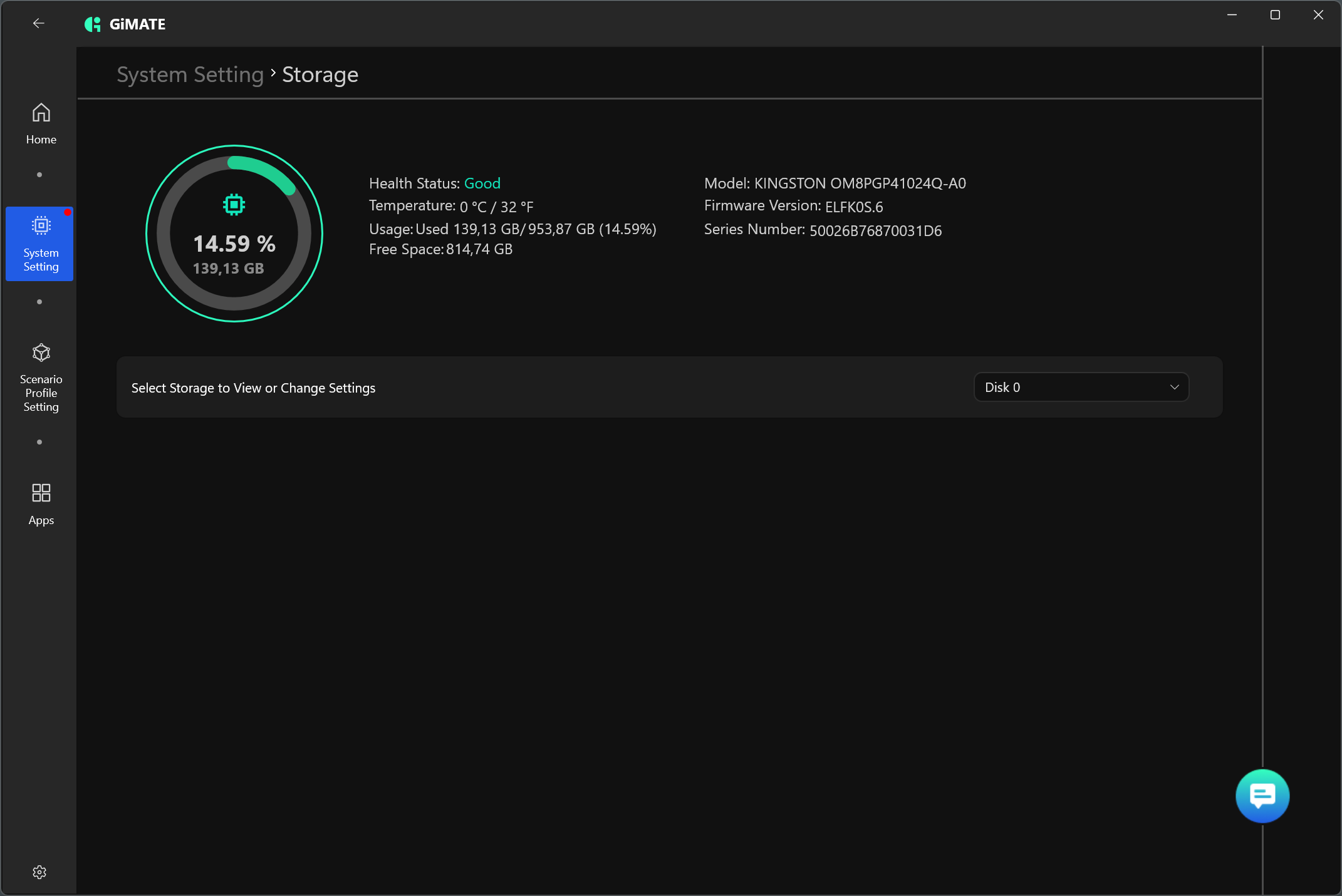 В машине установлен терабайтный NVMe SSD Kingston OM8PGP41024Q (PCIe 4 ×4).