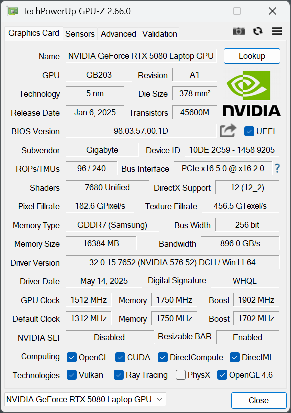 | Nvidia GeForce RTX 5080 Laptop, 175 Вт | Nvidia GeForce RTX 5090 Laptop, 175 Вт | |||||||