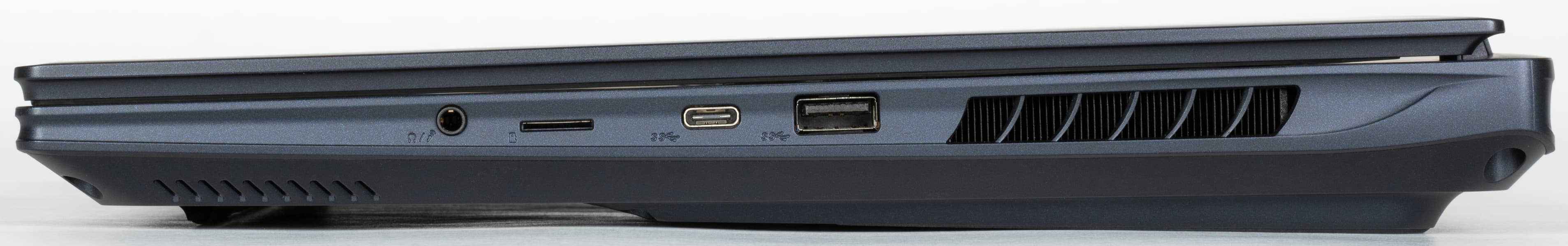 Справа видны комбинированный аудиоразъем, картовод для microSD/TransFlash, порты USB 3.2 Gen2 Type-C и Type-A, а также боковая решетка выходного тракта системы охлаждения.