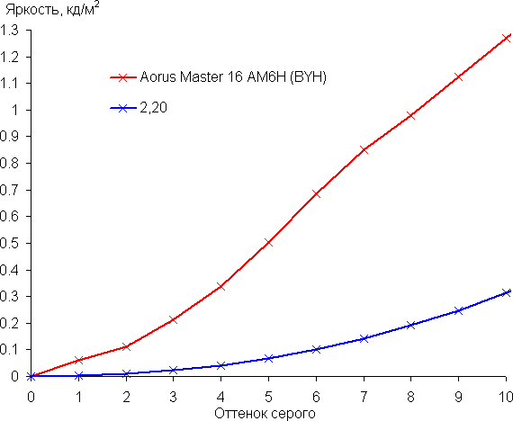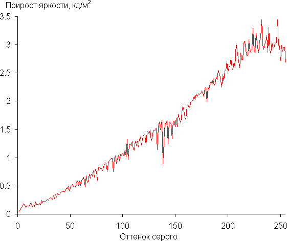 Вернемся к экрану тестируемого ноутбука. Если настройка яркости равна 0%, то экран фактически выключается, при 1% яркость порядка 0,5 кд/м², при 2% — 2 кд/м² , при 3% — 4 кд/м², и так далее. То есть в полной темноте яркость экрана получится понизить до комфортного уровня.