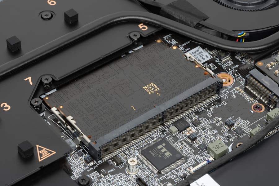 Ноутбук экипирован 32 ГБ оперативной памяти, которая работает в двухканальном режиме и набрана из двух модулей SO-DIMM DDR5-5600 по 16 ГБ.