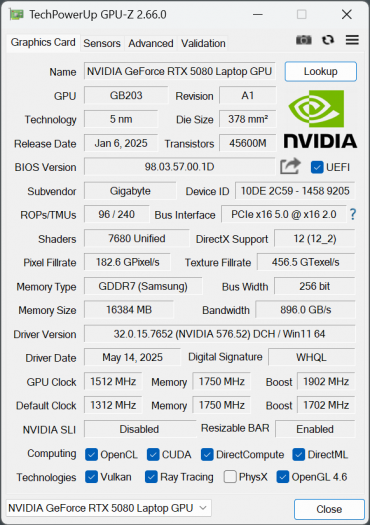 - BYH — Nvidia GeForce RTX 5080 Laptop (16 ГБ GDDR7, 175 Вт)