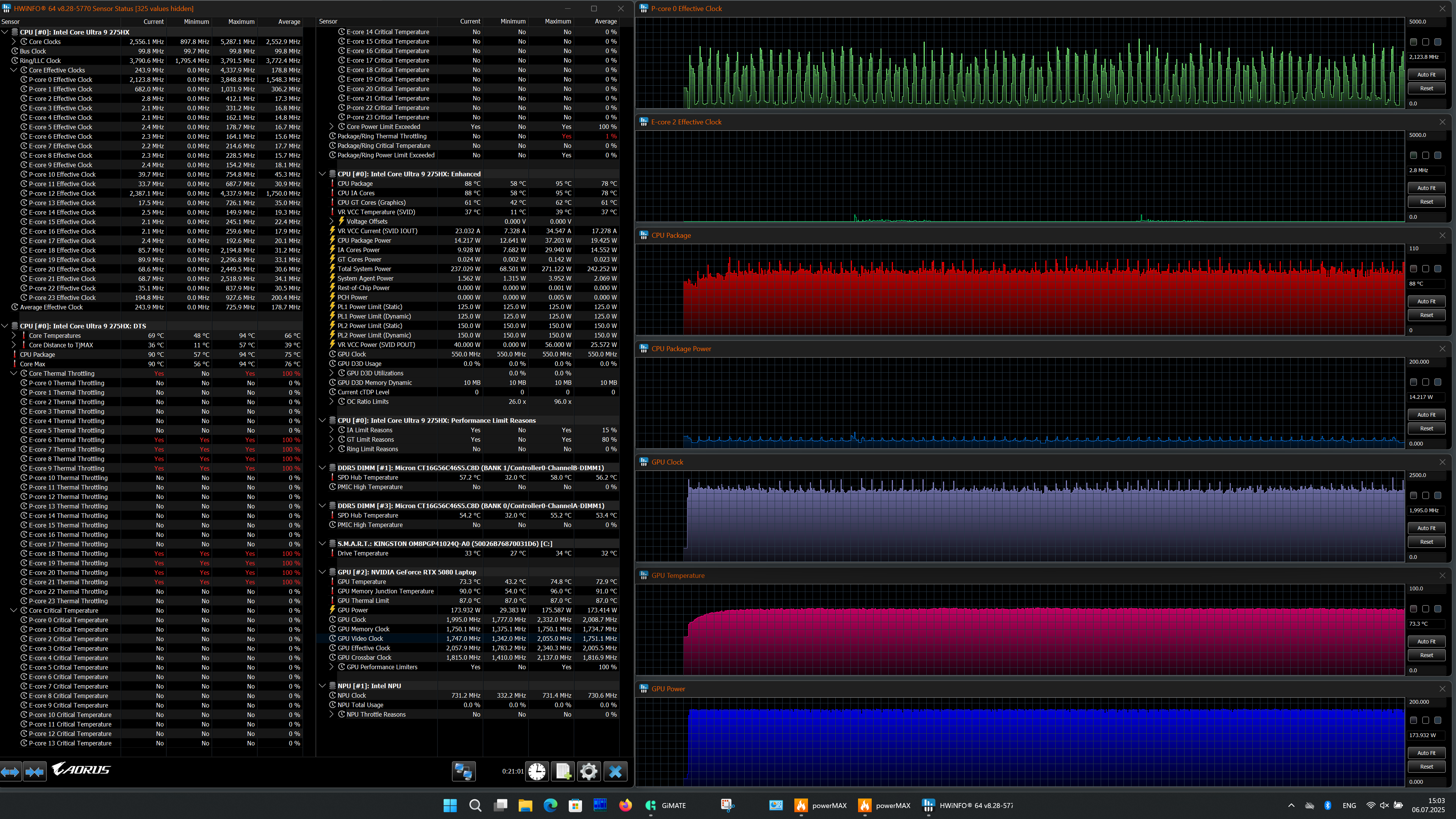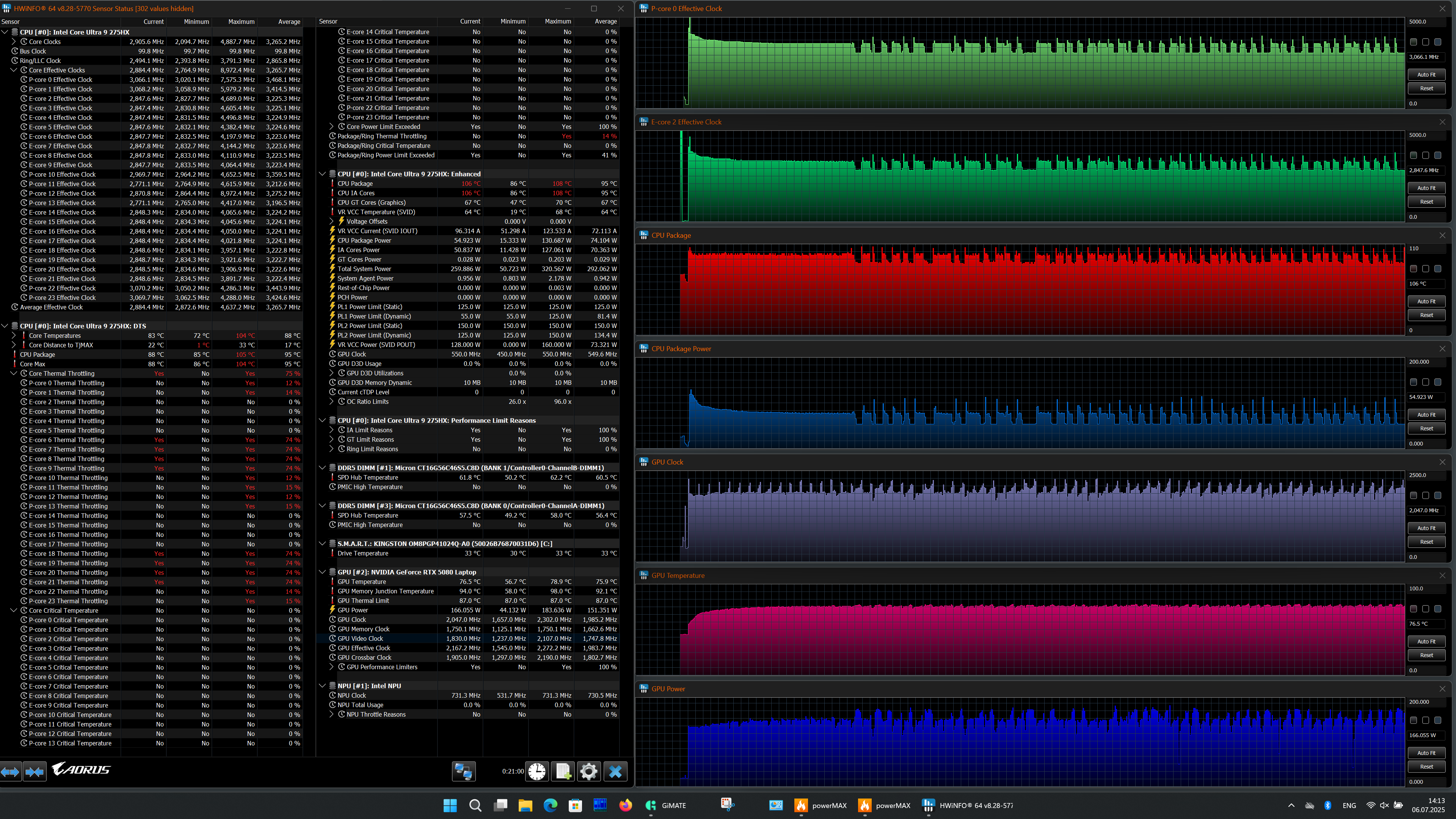 | Видеоподсистема | интегрированная: Intel Arc Graphics (1,9 ГГц) дискретная: Nvidia GeForce RTX 5080 Laptop, 16 ГБ GDDR7 (до 1,9 ГГц, 175 Вт) |