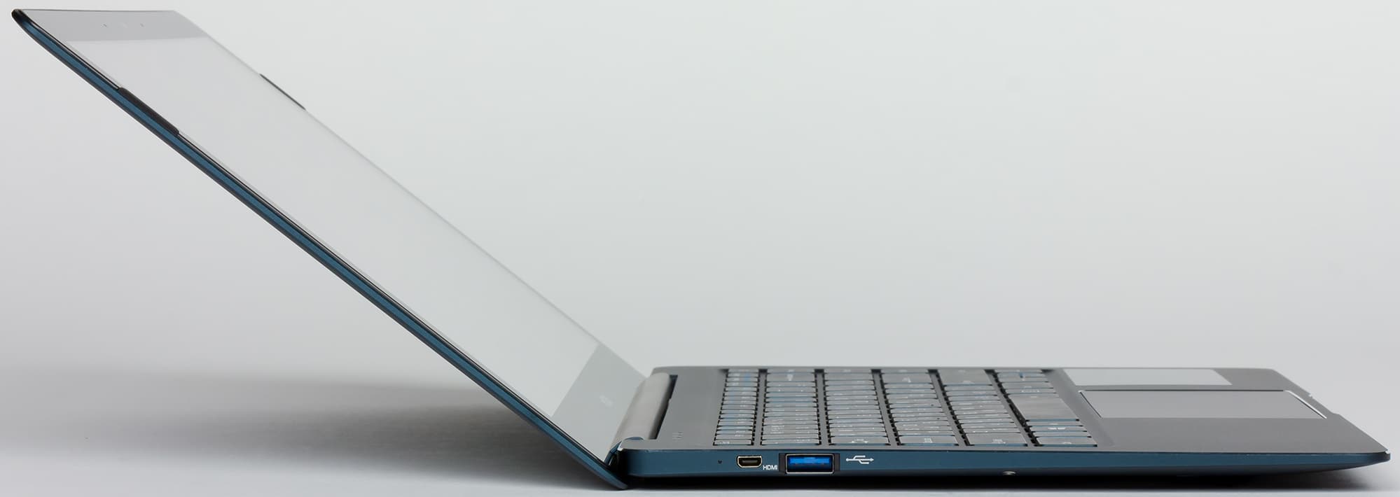 Заявленная толщина корпуса составляет 10 мм, однако тут нужно иметь в виду, что речь идет о китайских миллиметрах. Общепринятые миллиметры чуть меньше, и их получается не 10, а 14. Но даже при толщине корпуса в 14 мм ноутбук очень тонкий.