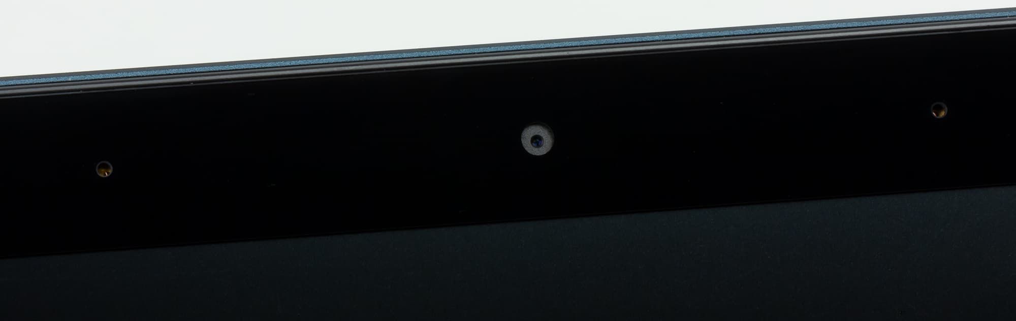 Экран ноутбука закрыт стеклом, что при выключенном экране создает иллюзию отсутствия вокруг него рамки. Но при включении рамка становится видна, с боков ее толщина составляет 13 мм, сверху — 16 мм, а снизу — 20 мм. На верхней части рамки расположены веб-камера и отверстия двух микрофонов.