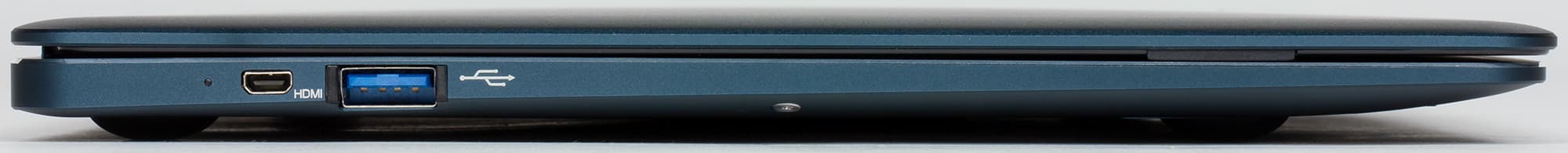 На левом торце корпуса расположены порт USB 3.0 (Type-А), разъем Micro-HDMI и миниатюрный индикатор заряда батареи.