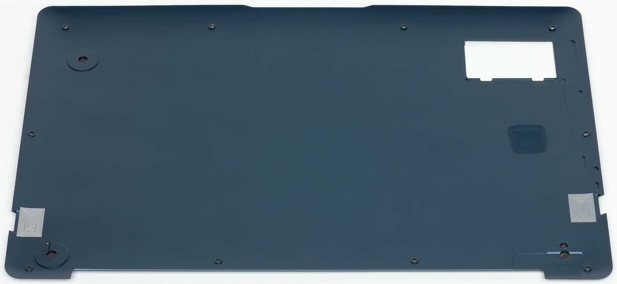 Нижняя панель по цвету ничем не отличается от остального корпуса. На нижней панели есть резиновые ножки, обеспечивающие устойчивое положение ноутбука на горизонтальной поверхности.
