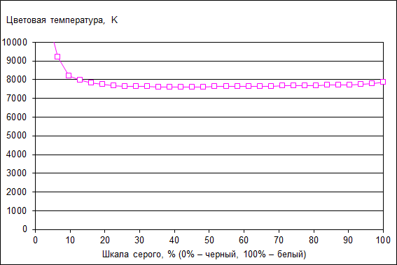 Цветовая температура ЖК-экрана стабильна по всей шкале серого и составляет примерно 7800 K.