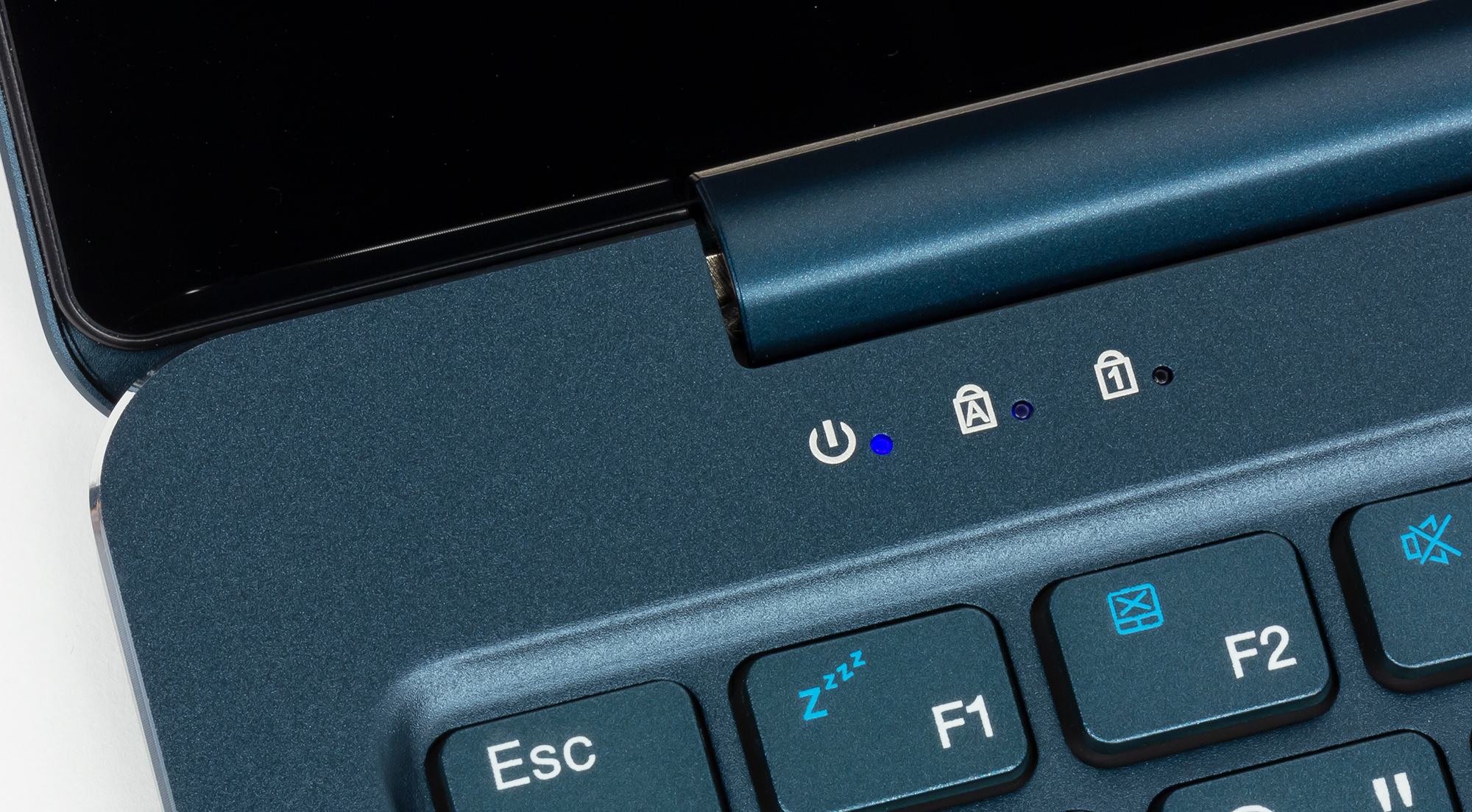 Миниатюрные светодиодные индикаторы состояния ноутбука расположены слева над клавиатурой. Всего индикаторов три: индикатор питания, Caps Lock и Num Lock.