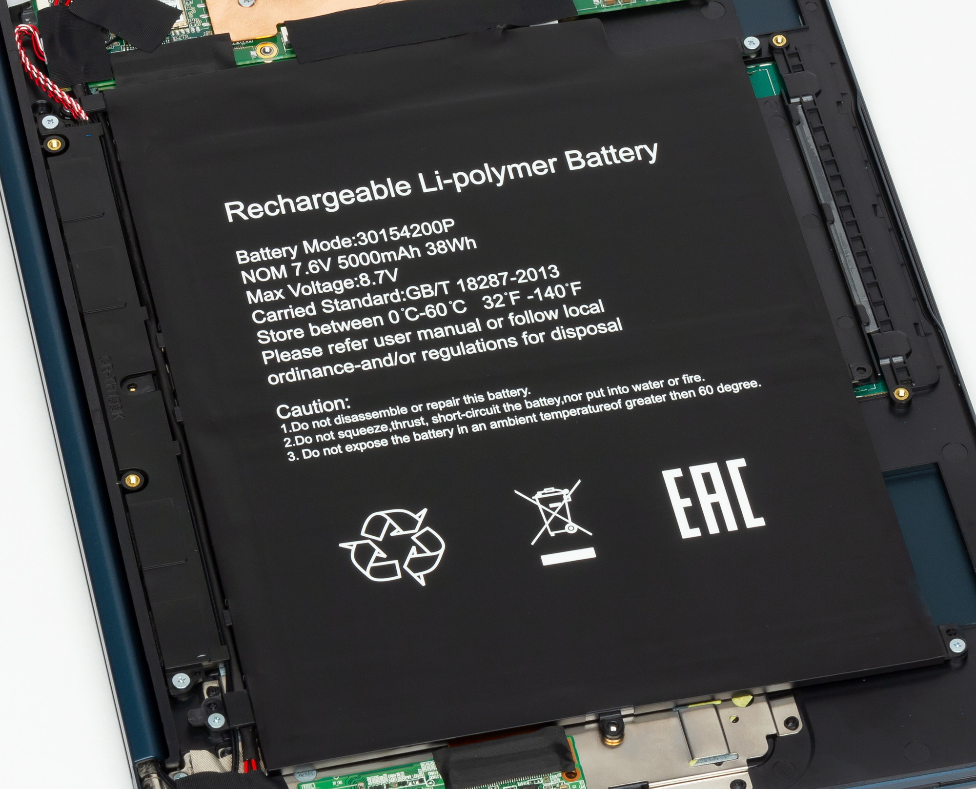 Остается добавить, что ноутбук оснащен встроенной HD-веб-камерой, расположенной сверху экрана, а также несъемной аккумуляторной батареей емкостью 38 Вт·ч.