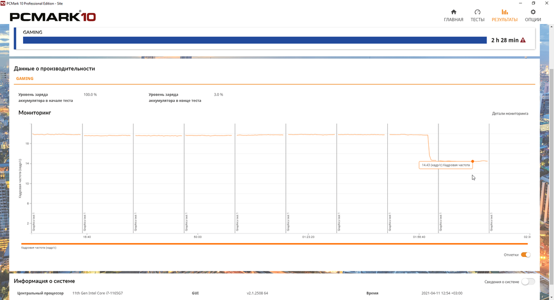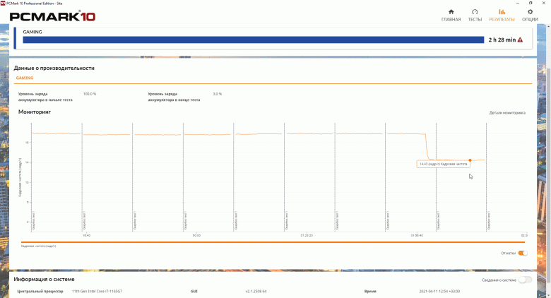 В условном игровом режиме аккумулятора Honor MagicBook 14 хватит на 2,5 часа, а при воспроизведении полноэкранного видео с уровнем звука 20% и активными сетевыми соединениями ноутбук проработал 13 с половиной часов. Примерно такие же результаты мы получили и в прошлом году на предыдущей версии этого ноутбука с процессором AMD Ryzen 5 4500U.