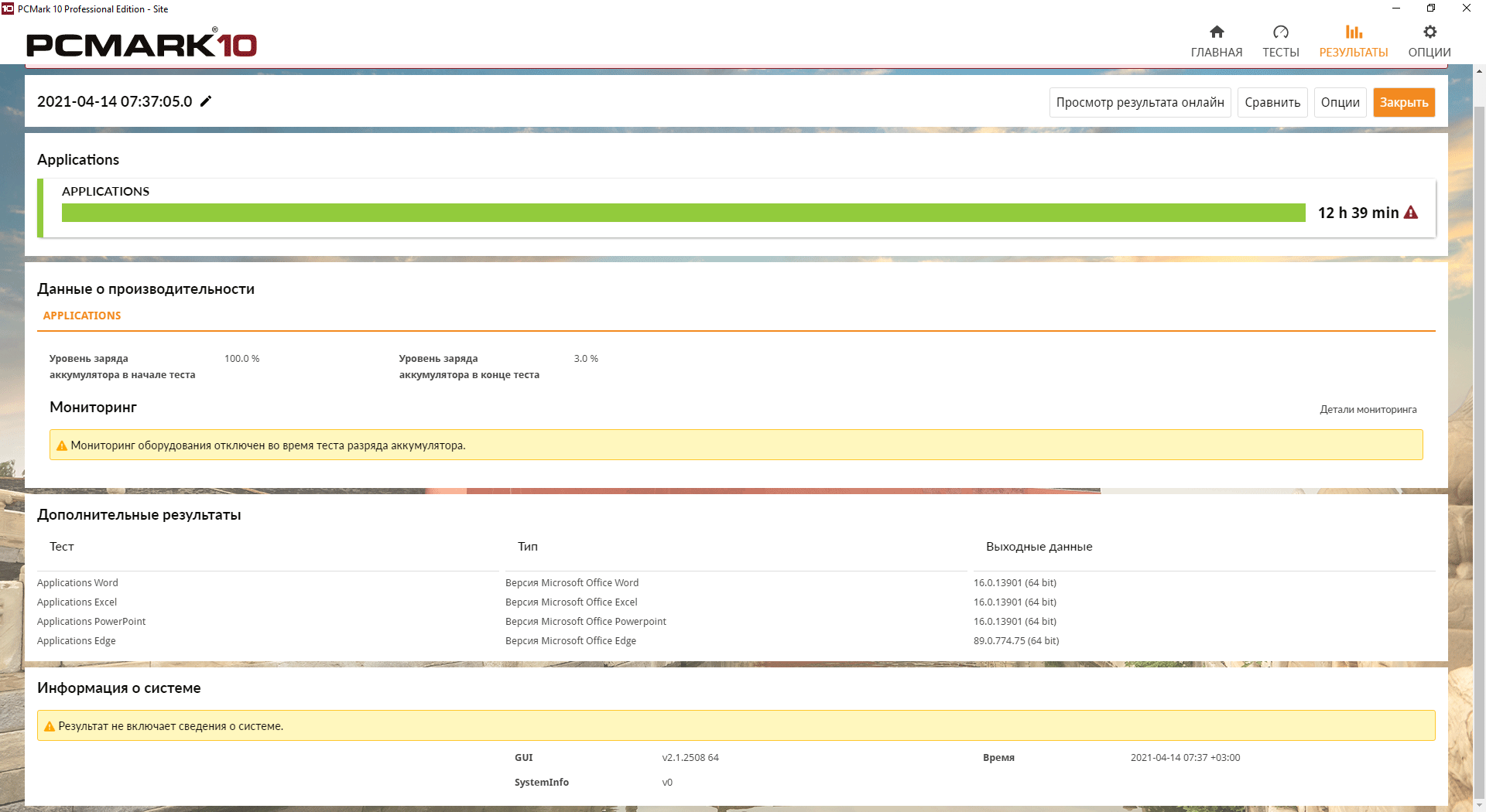 Автономность обновленного Honor MagicBook 14 находится на высоком уровне. Мы измеряли ее в тестовом пакете PCMark’10 при яркости экрана 100 кд/м² (что в данном случае эквивалентно 37%). В результате в тесте Modern Office ноутбук смог проработать почти 14 с половиной часов, а в тесте эмуляции работы с Word, Excel и PowerPoint — 12 часов и 39 минут.