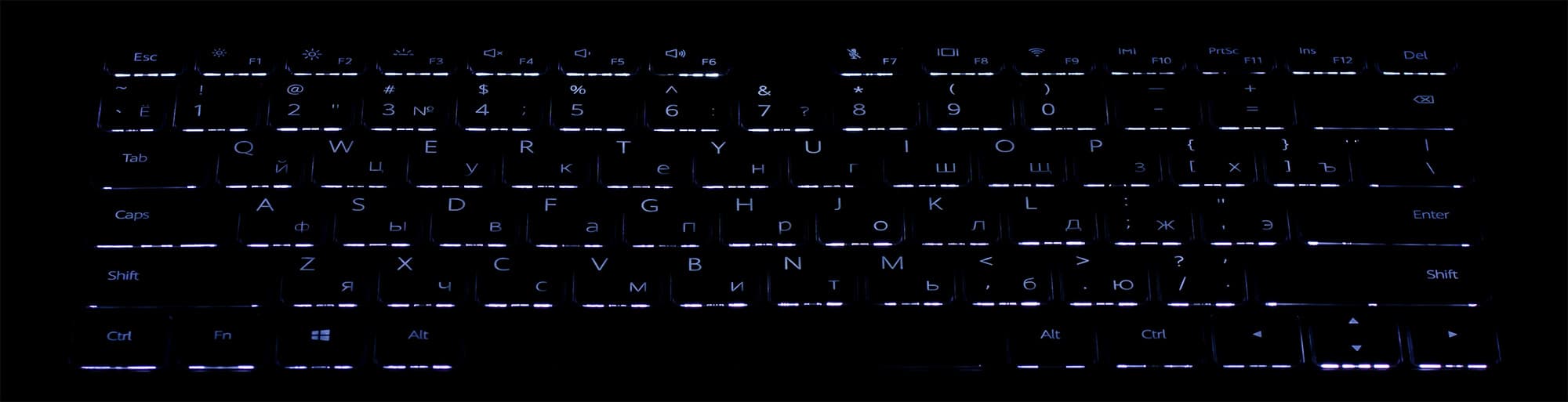Подсветка клавиатуры двухуровневая, белого цвета и с автоматическим отключением через 15 секунд бездействия.