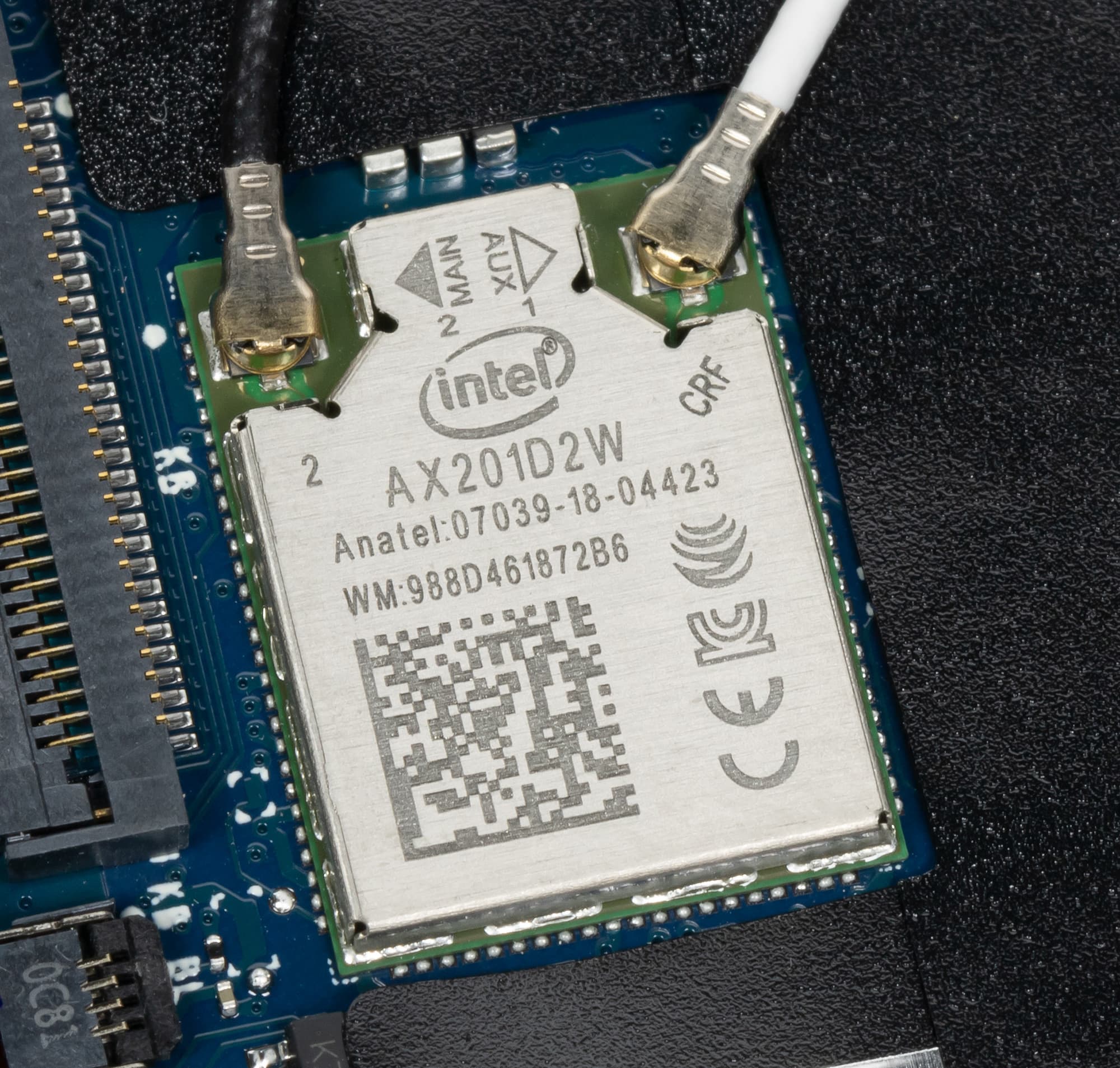 | Беспроводная сеть Wi-Fi | Intel Wi-Fi 6 AX201D2W (802.11ax, MIMO 2×2, 2,4 и 5 ГГц, 160 МГц) | |