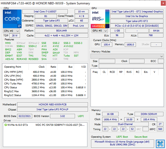Итак, давайте резюмируем, чем новый Honor MagicBook 14 (2021) с индексом NDR-WFE9HN отличается от прошлогодней модели NblL-WDQ9HN. В первую очередь произошла замена процессора с AMD Ryzen 5 4500U на Intel Core i7-1165G7, которая не принесла качественного рывка в производительности (да и не должна была), но сделала ноутбук быстрее в 3D-играх. Вторым важным изменением стал вдвое увеличенный объем оперативной памяти: теперь можно выбрать модель с 16 ГБ DDR4-3200 (у предшественника было 8 ГБ и DDR4-2666). Кроме этого, изменения коснулись накопителя SSD (в новой модели ноутбука он работает разительно быстрее), а также беспроводного модуля связи, который теперь поддерживает Wi-Fi 6. Также ноутбук оснастили более эффективной системой охлаждения на двух тепловых трубках, благодаря которой он может работать тихо практически в любых сценариях.