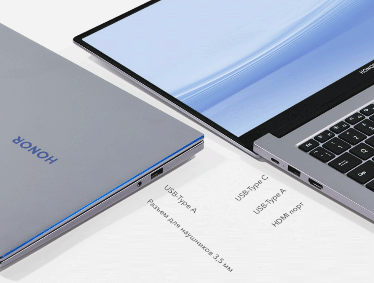 К сборке корпуса и качеству используемых материалов в случае Honor MagicBook 14 (2021) придраться сложно, все выполнено очень аккуратно, материал панелей тактильно приятный.