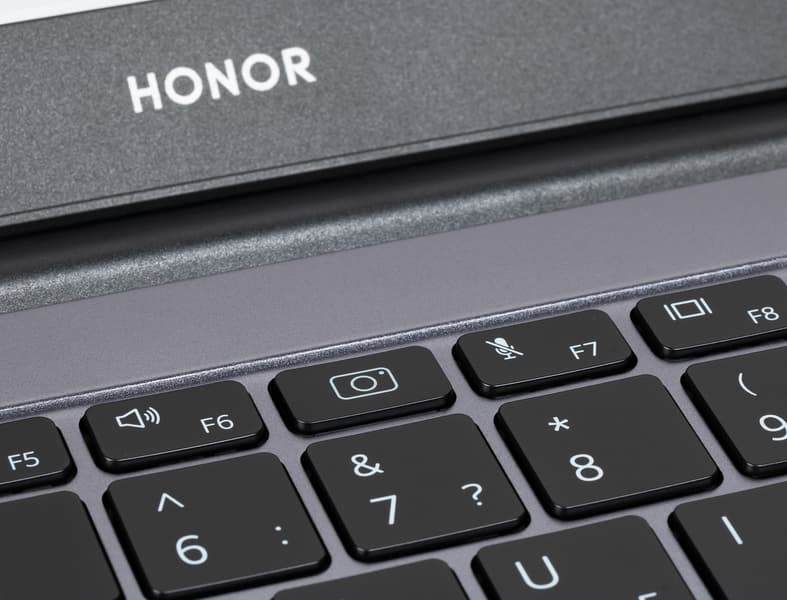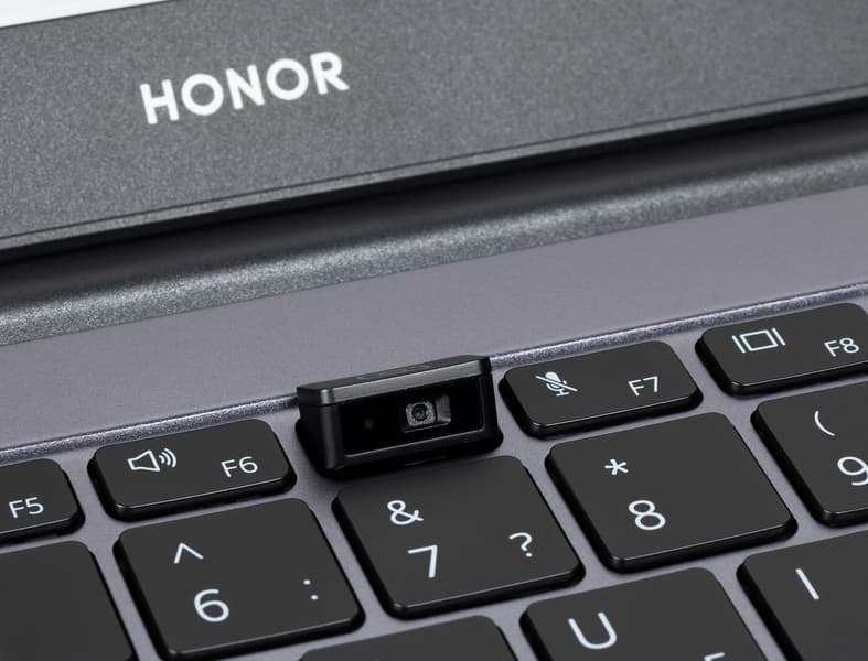 Веб-камера у Honor MagicBook 14 размещена в центральной «кнопке» в ряду функциональных клавиш и открывается после легкого нажатия на нее.