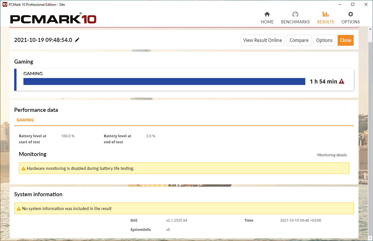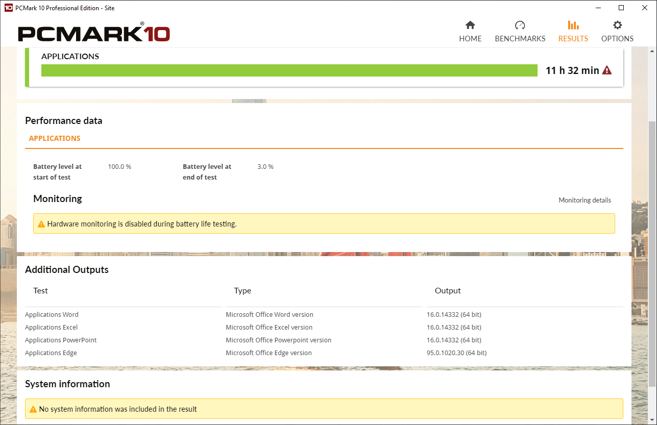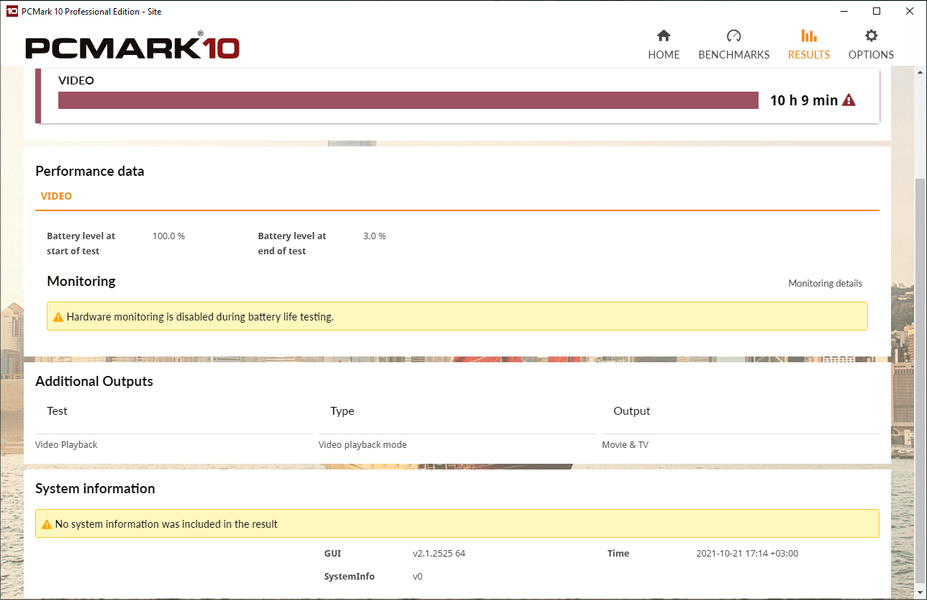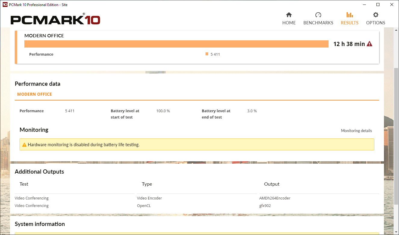 Автономность Honor MagicBook 14 NMH-WDQ9HN мы проверили в тестовом пакете PCMark’10 при яркости экрана 100 кд/м² (55% по шкале яркости). Теоретически, при прочих равных, 14-дюймовая модель должна работать дольше 15-дюймовой, однако на практике этого не случилось.
