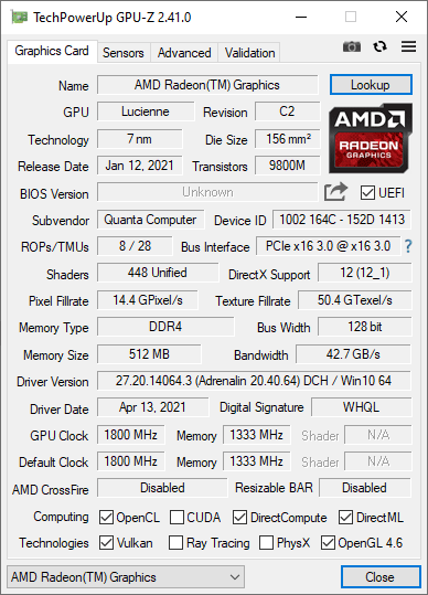 | Видеоподсистема | интегрированная в процессор AMD Radeon Graphics | |