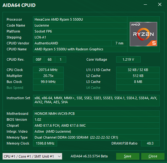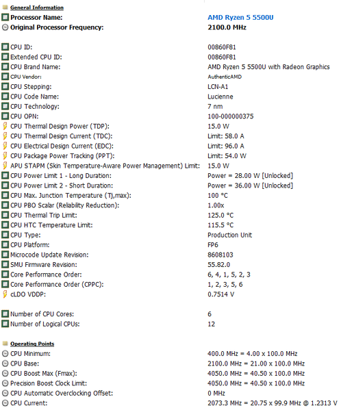 | Процессор | AMD Ryzen 5 5500U (7 нм, 6 ядер/12 потоков, 2,1—4,0 ГГц, L3-кэш 8 МБ, TDP 10—25 Вт) | |