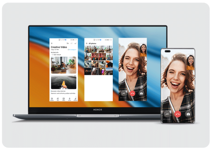 Ограничений в поддержке фирменной функции «Мультиэкран» у Honor MagicBook 14, разумеется, нет.