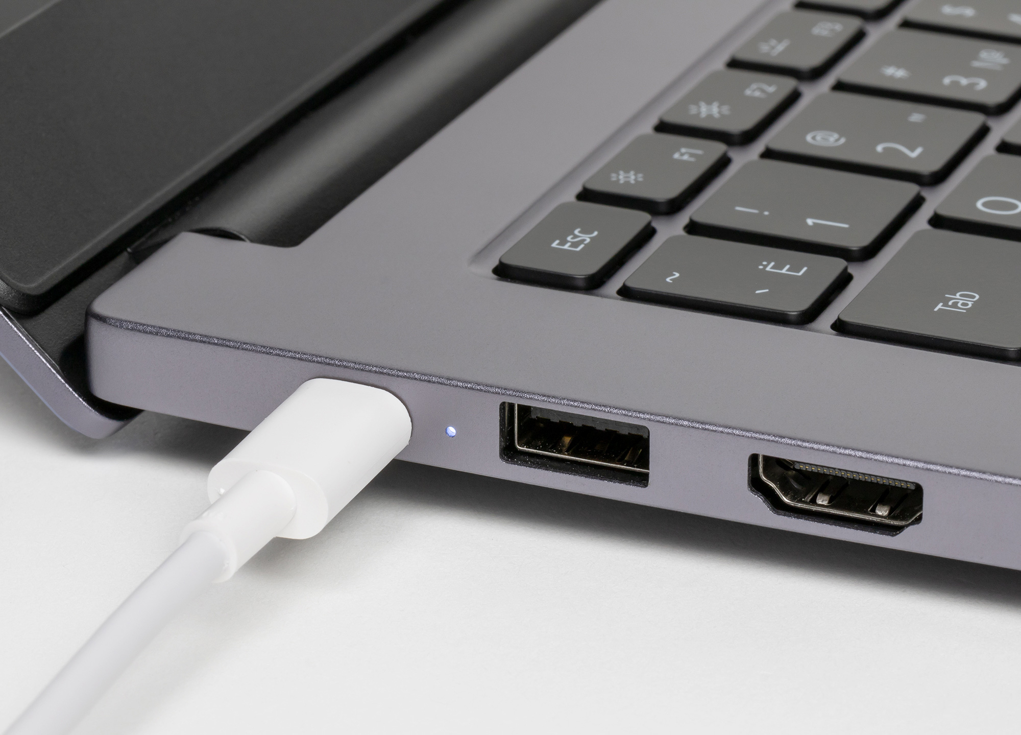 Напомним, что слева выведен USB Type-С (2.0) для зарядки (с индикатором), порт USB Type-A (также 2.0) и видеовыход HDMI, а справа — комбинированный разъем для наушников/микрофона и USB 3.0 Type-A.