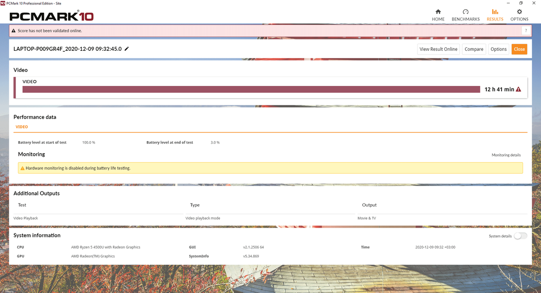 В режиме эмуляции повседневной работы в офисных приложениях «Applications» ноутбук продержался от аккумулятора почти 14 часов, а в тесте воспроизведения видеоконтента — 12 часов и 41 минуту. Безусловно, в сравнении с предшественником это более чем впечатляющие показатели.