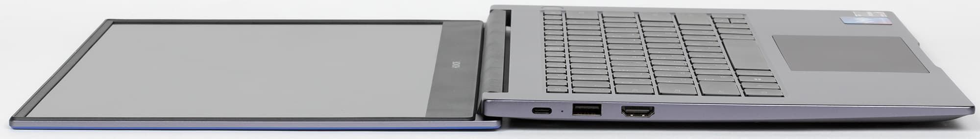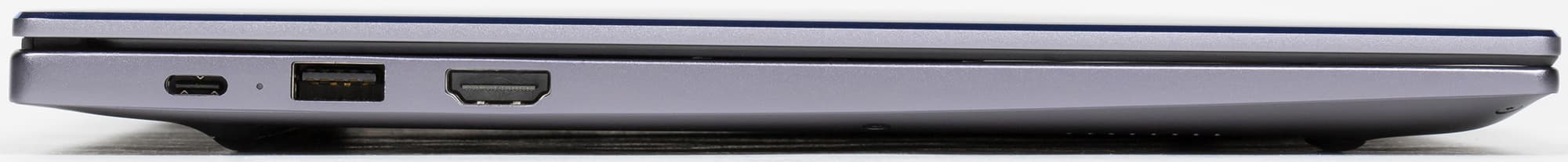 На боковые торцы корпуса ноутбука выведены по одному порту USB 3.1 Type-C, USB 3.0 Type-A и USB 2.0 Type-A, а также видеовыход HDMI и комбинированный аудиоразъем.