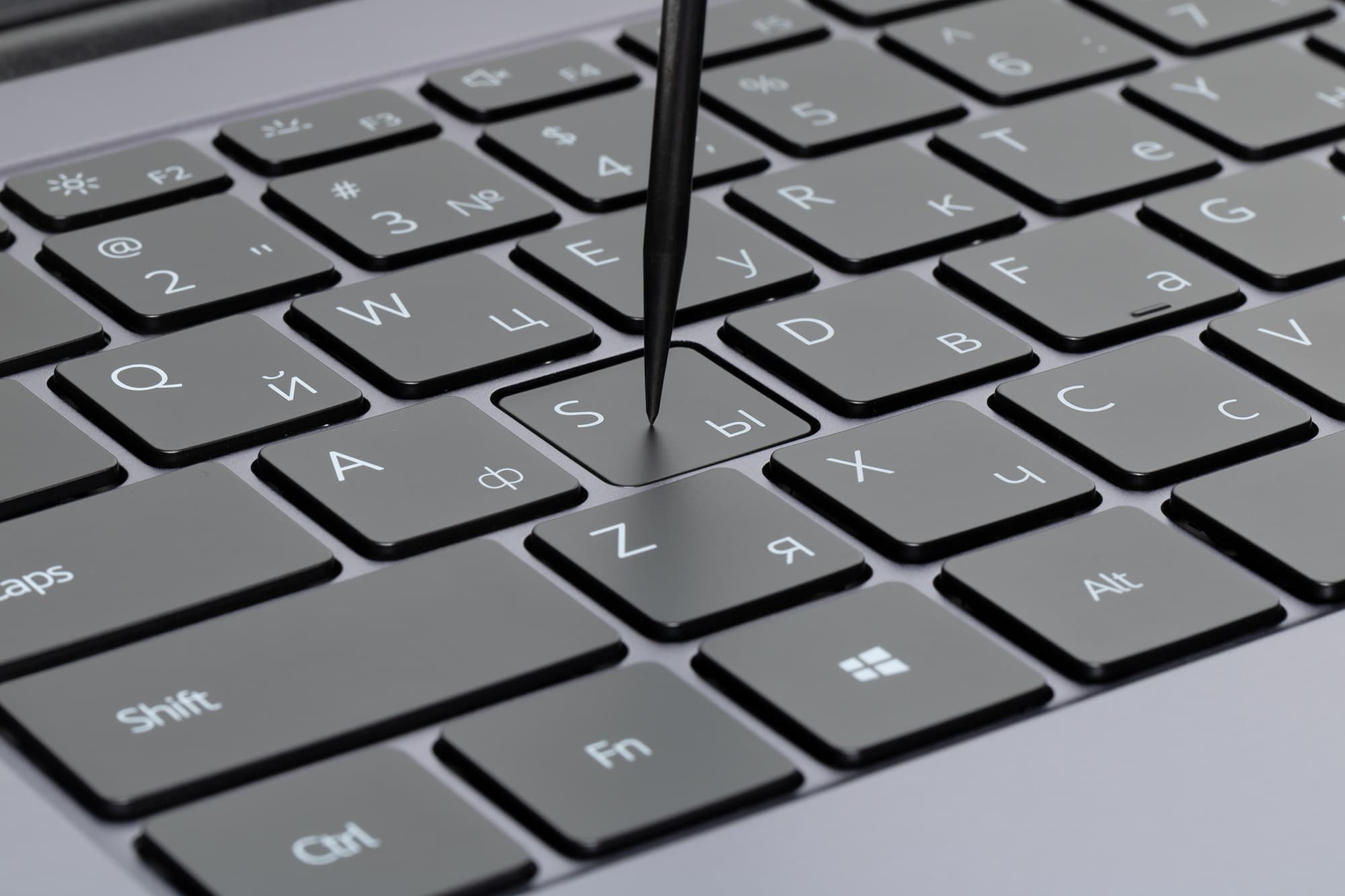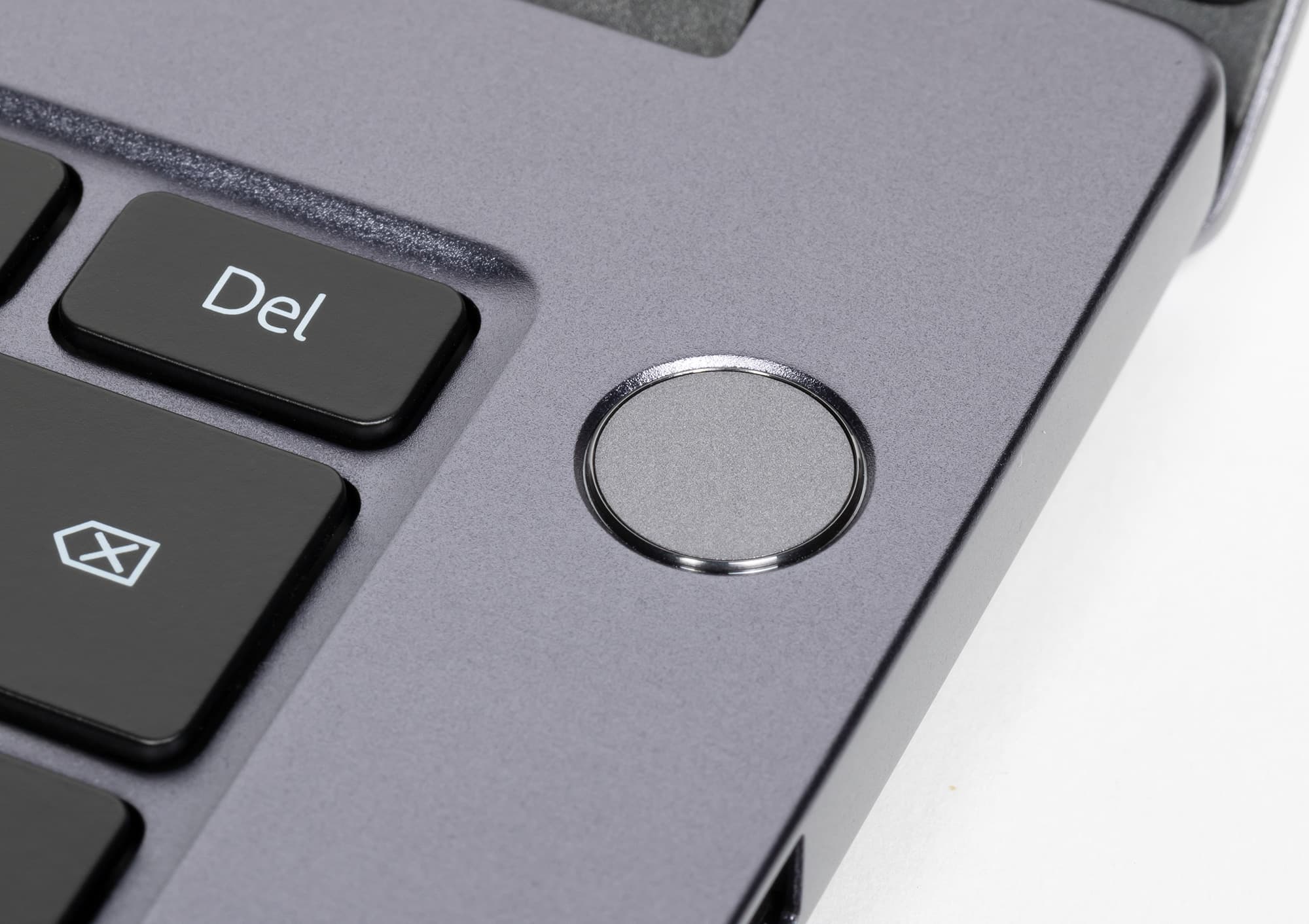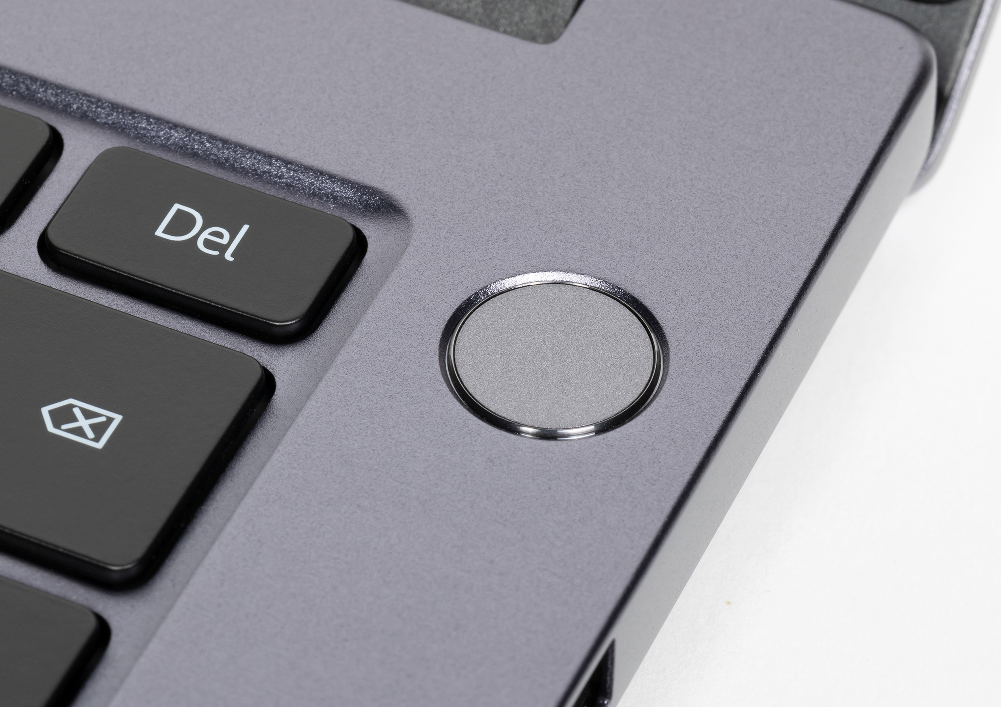 В круглую кнопку включения ноутбука встроен сканер отпечатка пальца для разблокировки и входа в систему.