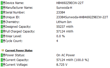 В среднем по четырем циклам полного заряда данный адаптер заряжает аккумулятор ноутбука емкостью 56 Вт·ч (7330 мА·ч) за 1 час и 39 минут, что на 20 минут быстрее, чем в случае предыдущей модели MagicBook 14.