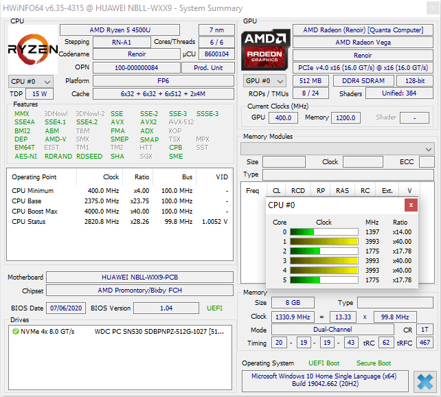 | Тест | Референсный результат | Honor MagicBook 14 NblL-WDQ9HN (AMD Ryzen 5 4500U) | Honor MagicBook 14 Nbl-WAQ9HNR (AMD Ryzen 5 3500U) |