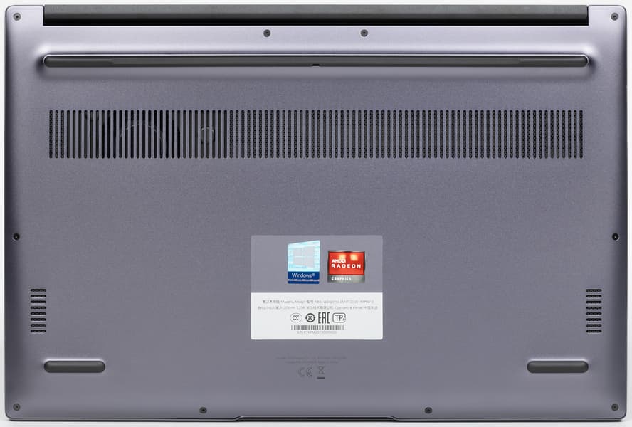 В отличие от верхней алюминиевой панели, основание ноутбука пластиковое. Здесь все те же резиновые ножки, длинная вентиляционная решетка и небольшие сеточки по бокам под акустику.