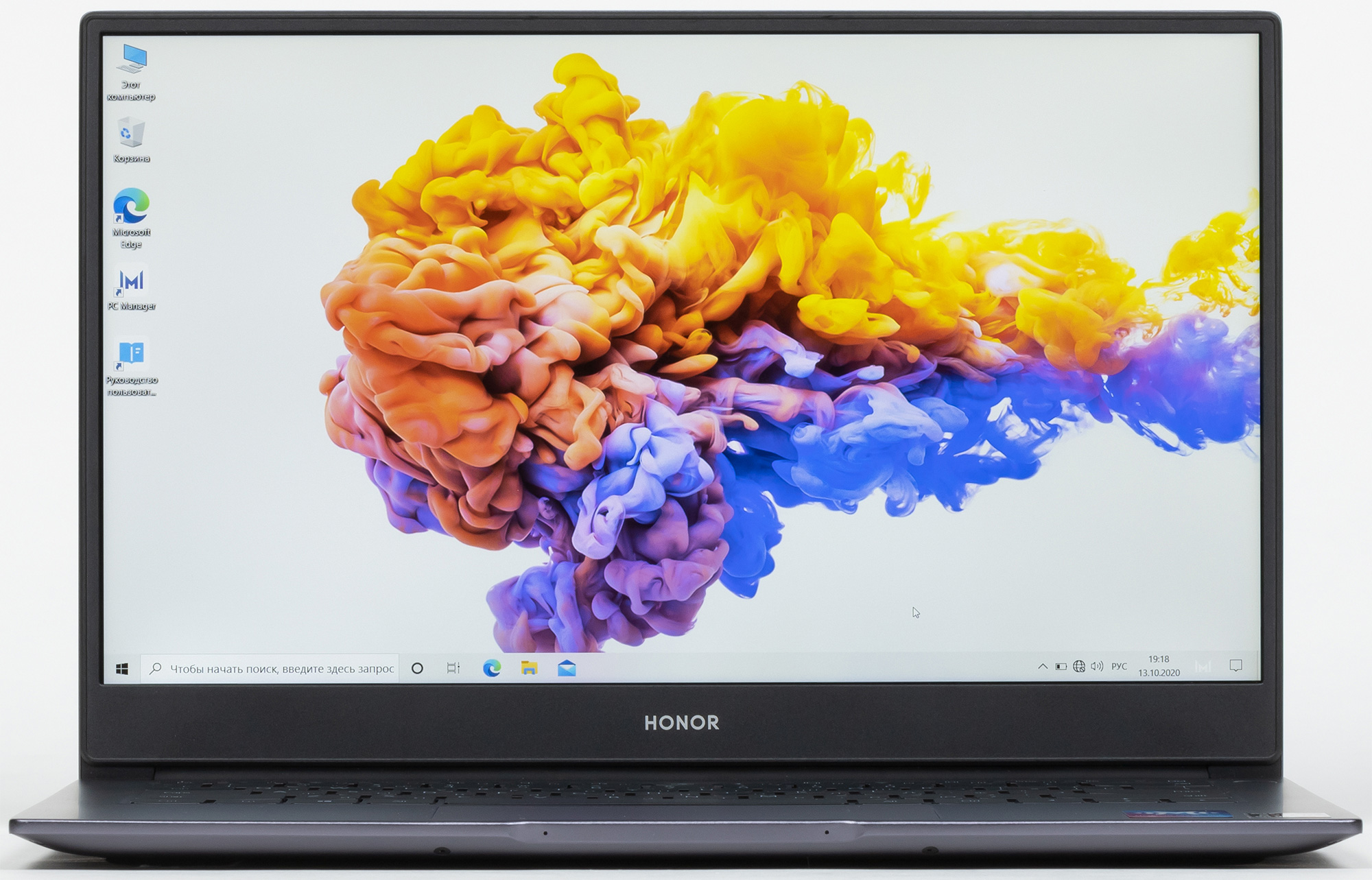 Боковые и верхняя части рамки дисплея Honor MagicBook 14 равны 6 мм, а нижняя — 20 мм. В ноутбуке используется 14-дюймовая IPS-матрица с разрешением 1920×1080 (отчет MonInfo).