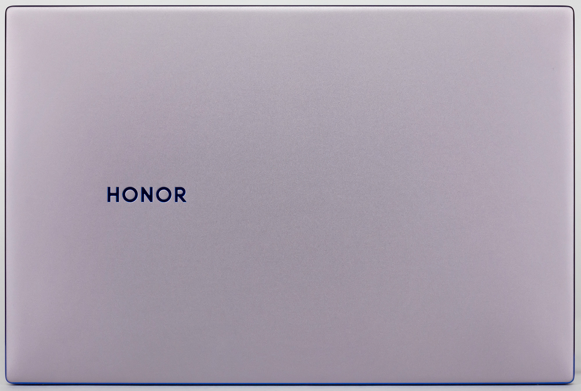 На крышке ноутбука нанесена лаконичная надпись «Honor», меняющая цвет под разными углами. Подсветки у нее нет.
