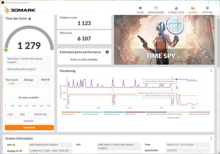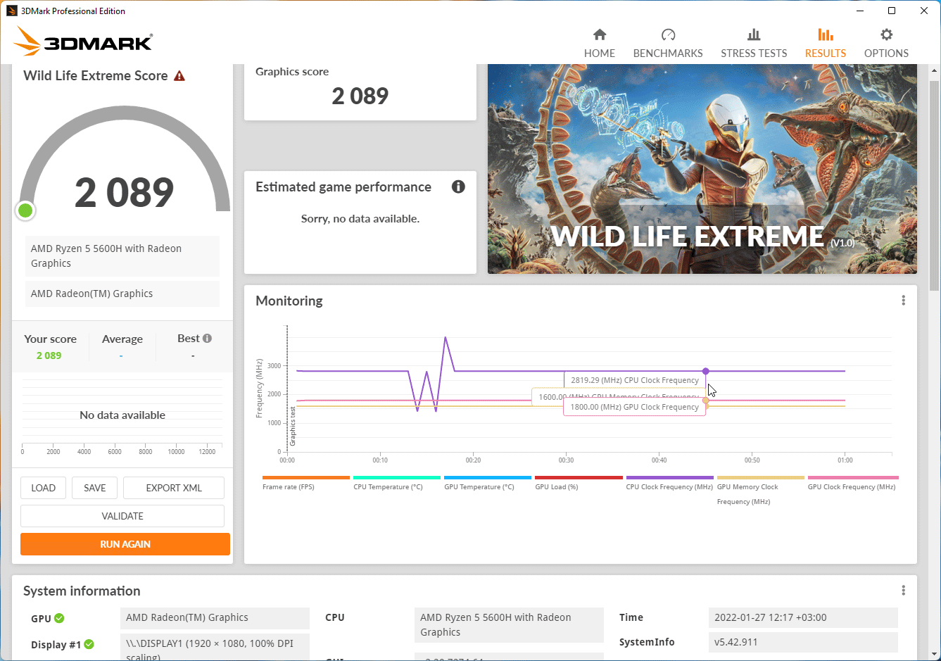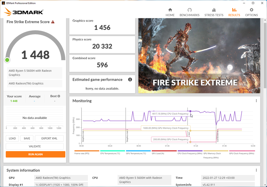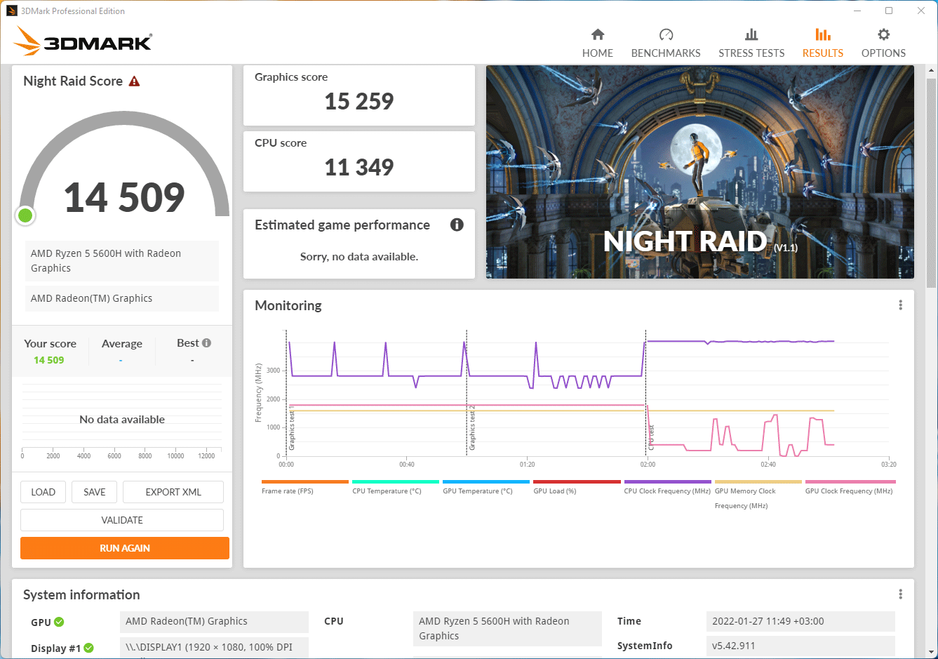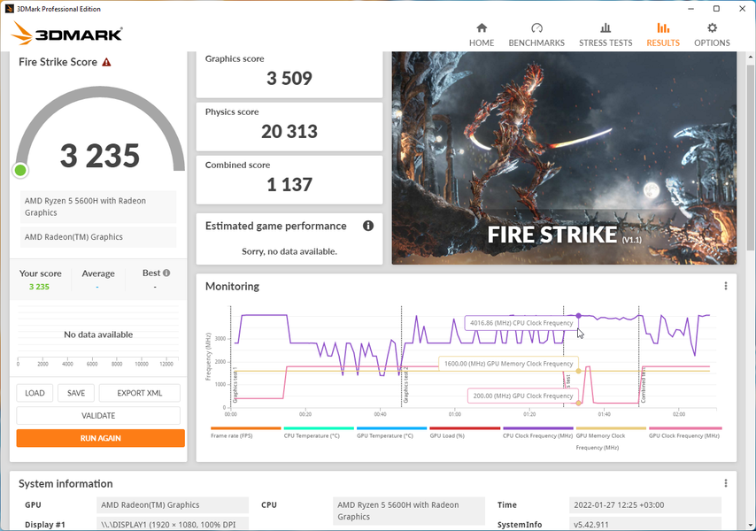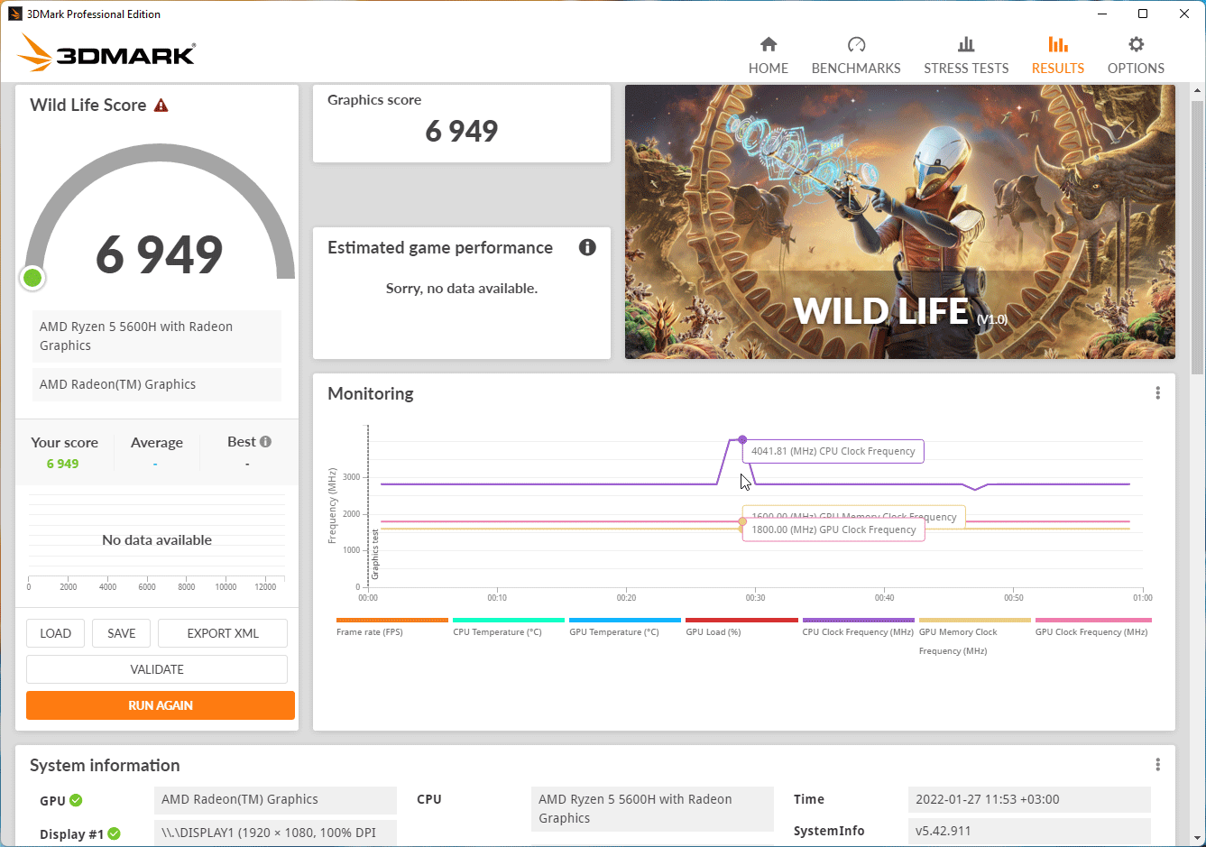Результаты тестирования встроенного в AMD Ryzen 5 5600H графического ядра мы приведем на скриншотах.