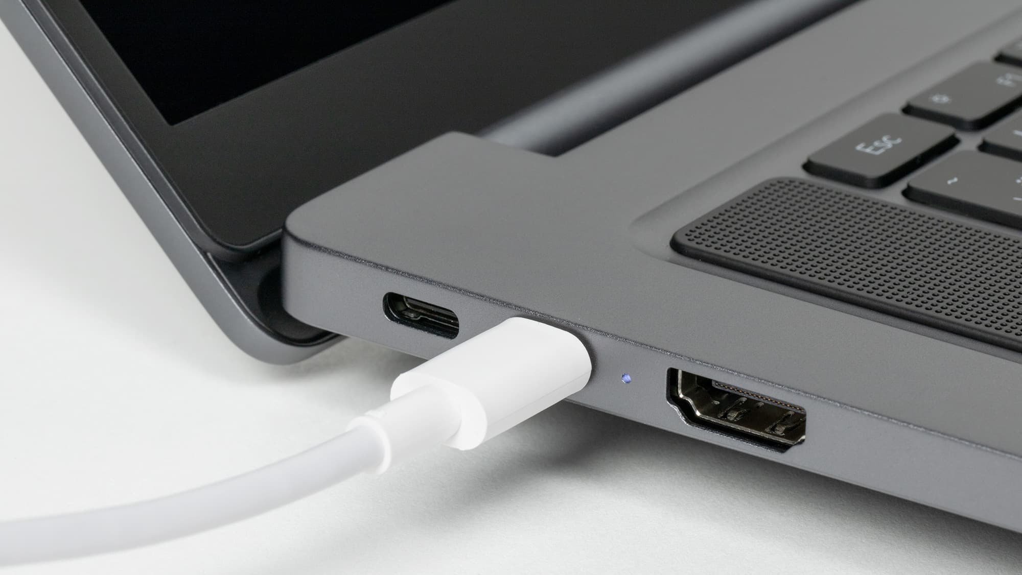 Для подключения адаптера можно использовать любой из двух портов USB Type-C, а о процессе зарядки будет сигнализировать мигающий белый светодиод.