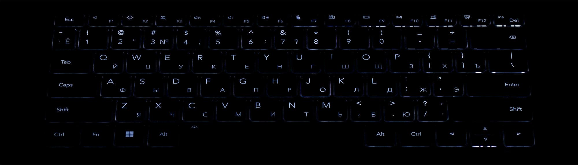 У клавиатуры есть белая подсветка с двумя уровнями яркости.